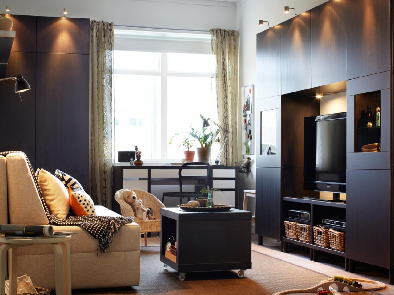 Um belo interior, no qual não é uma vergonha receber os hóspedes, é claro, é bom, mas e a praticidade? Mesmo em uma pequena sala de estar deve fornecer um lugar para seus livros favoritos e CDs com música, prateleiras para a colocação de exposições de sua coleção ou lembranças de países distantes.
