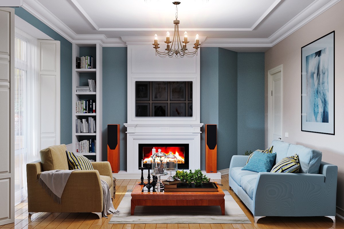 Permitiu a organização da lareira de imitação. Decoração de parede é desejável para executar com o uso de madeira ou papel de parede cores clássicas.