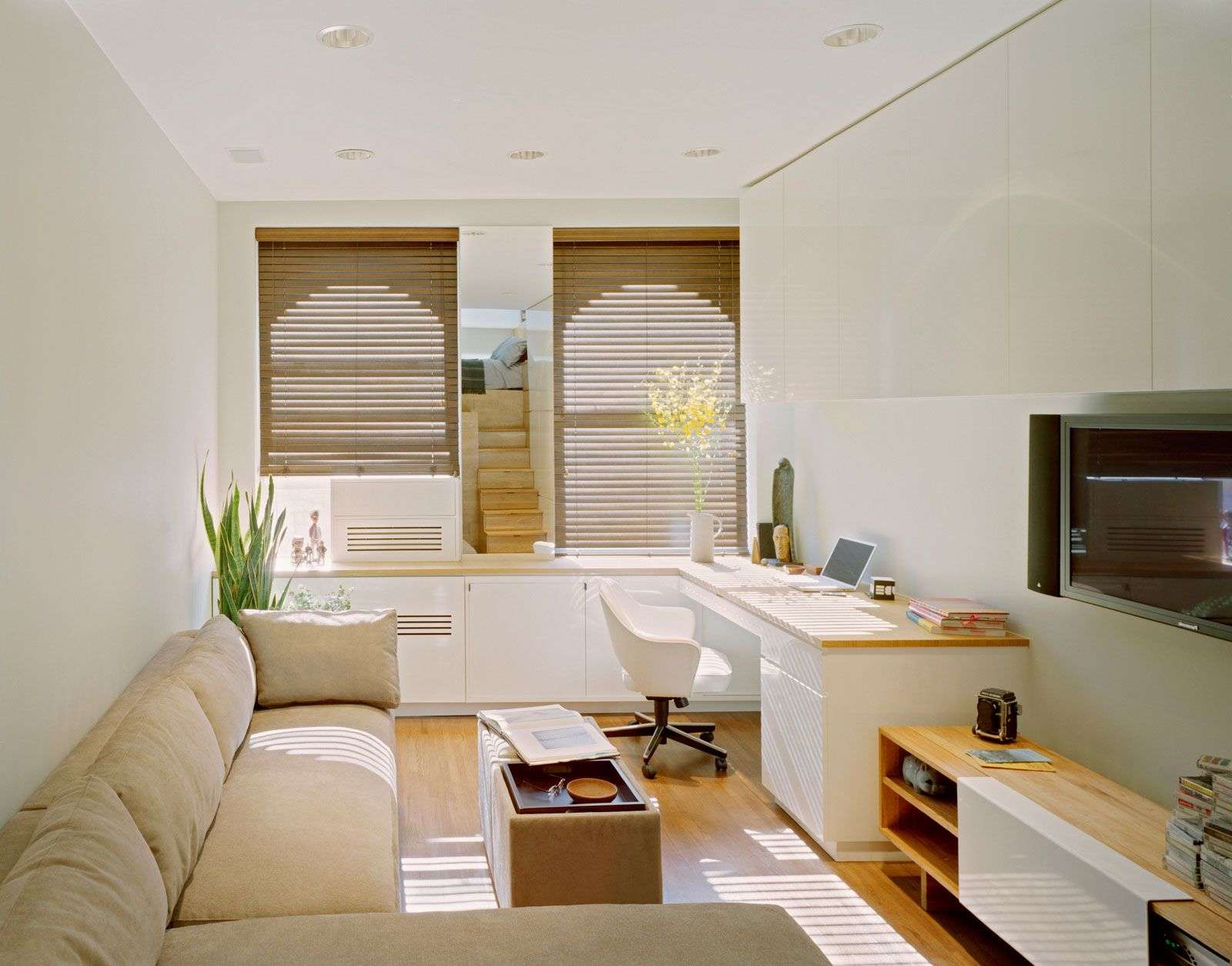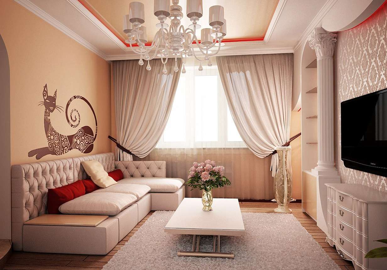 Criar uma sala de estar original em uma pequena praça é muito difícil. Soluções não padronizadas, assim como técnicas especiais, serão usadas.