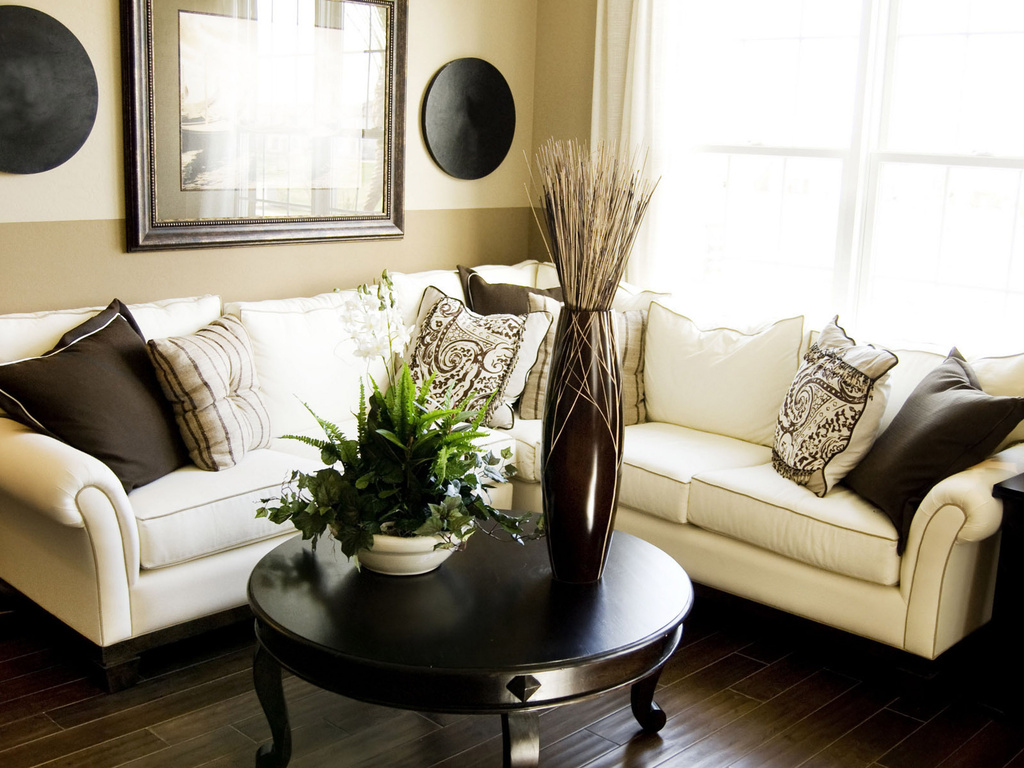 Tons frios, combinados com calor, podem ser usados em pequenas salas sem o perigo de deixá-los desconfortáveis e frios. As cores quentes e frias, quando combinadas com o branco, podem criar um espaço luminoso e confortável. Branco pode ser inserido como um acento.