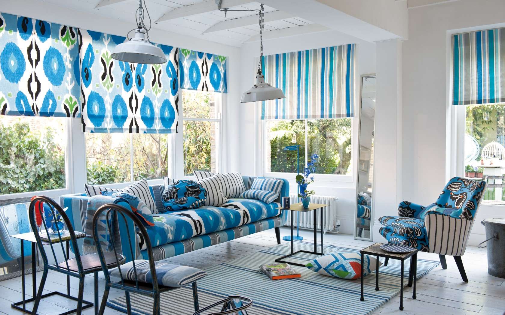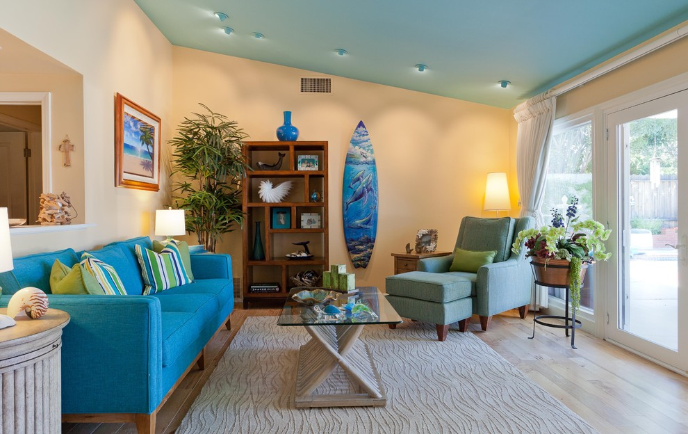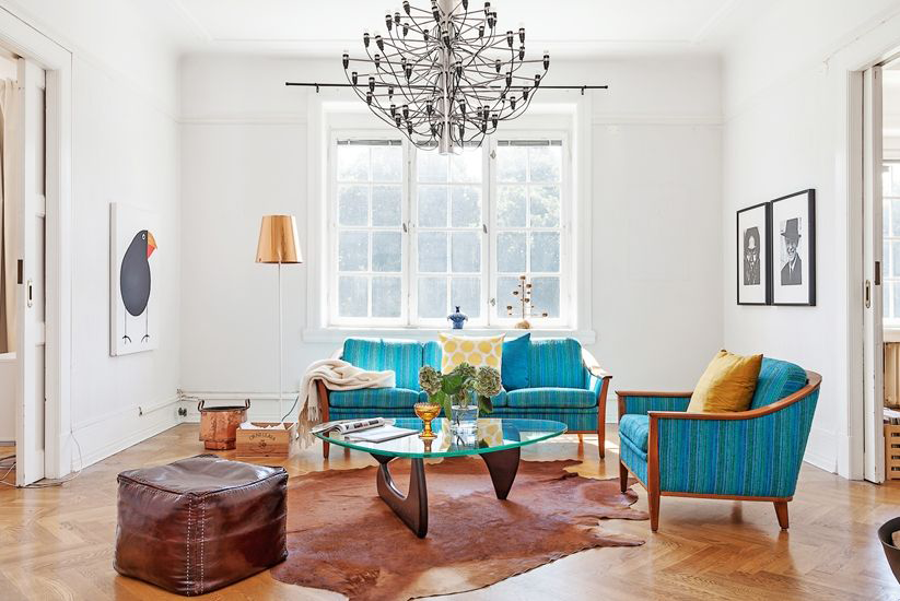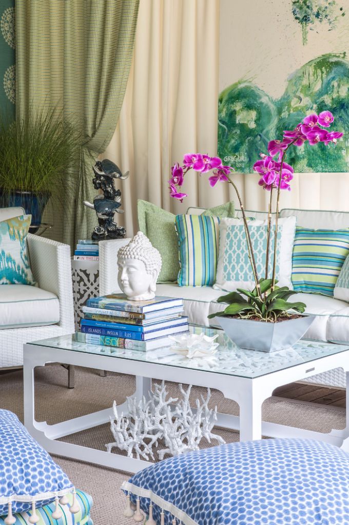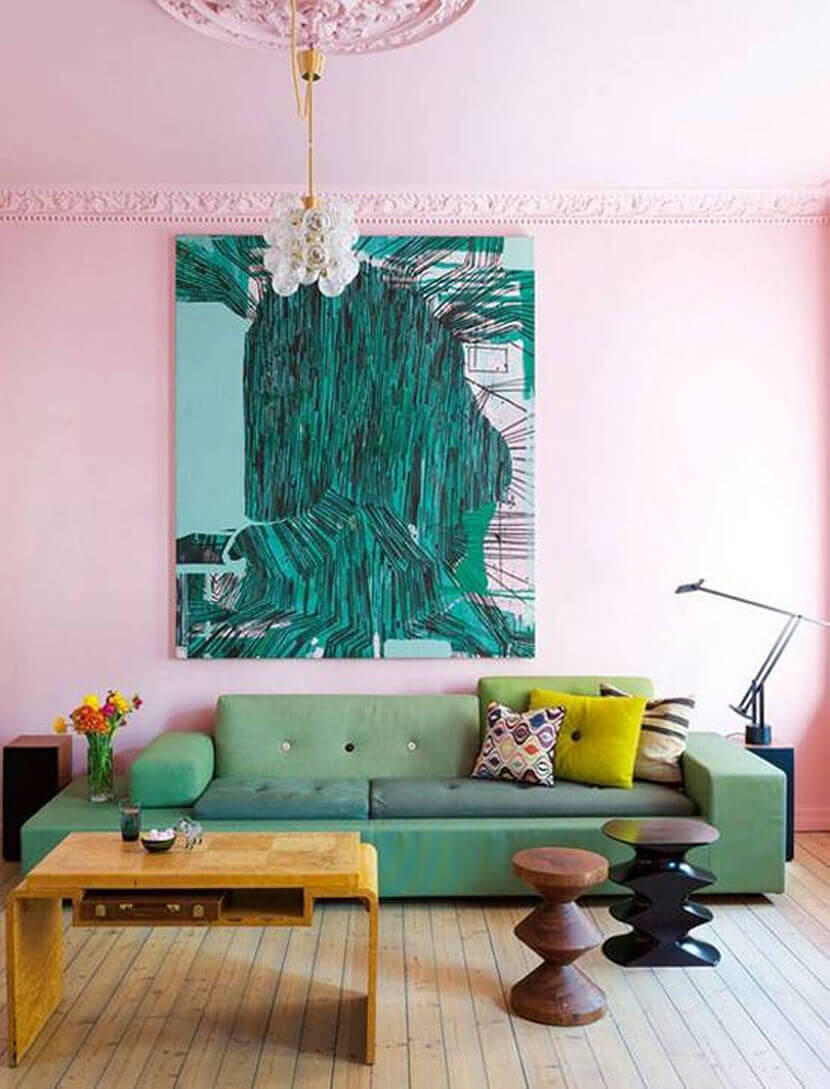 - a combinação de cores turquesa, azul, verde vai trazer para a sala o clima de "mar". Paleta em cores pastéis leves dará a atmosfera de ternura. E cores mais saturadas tornarão o interior ativo, energético;