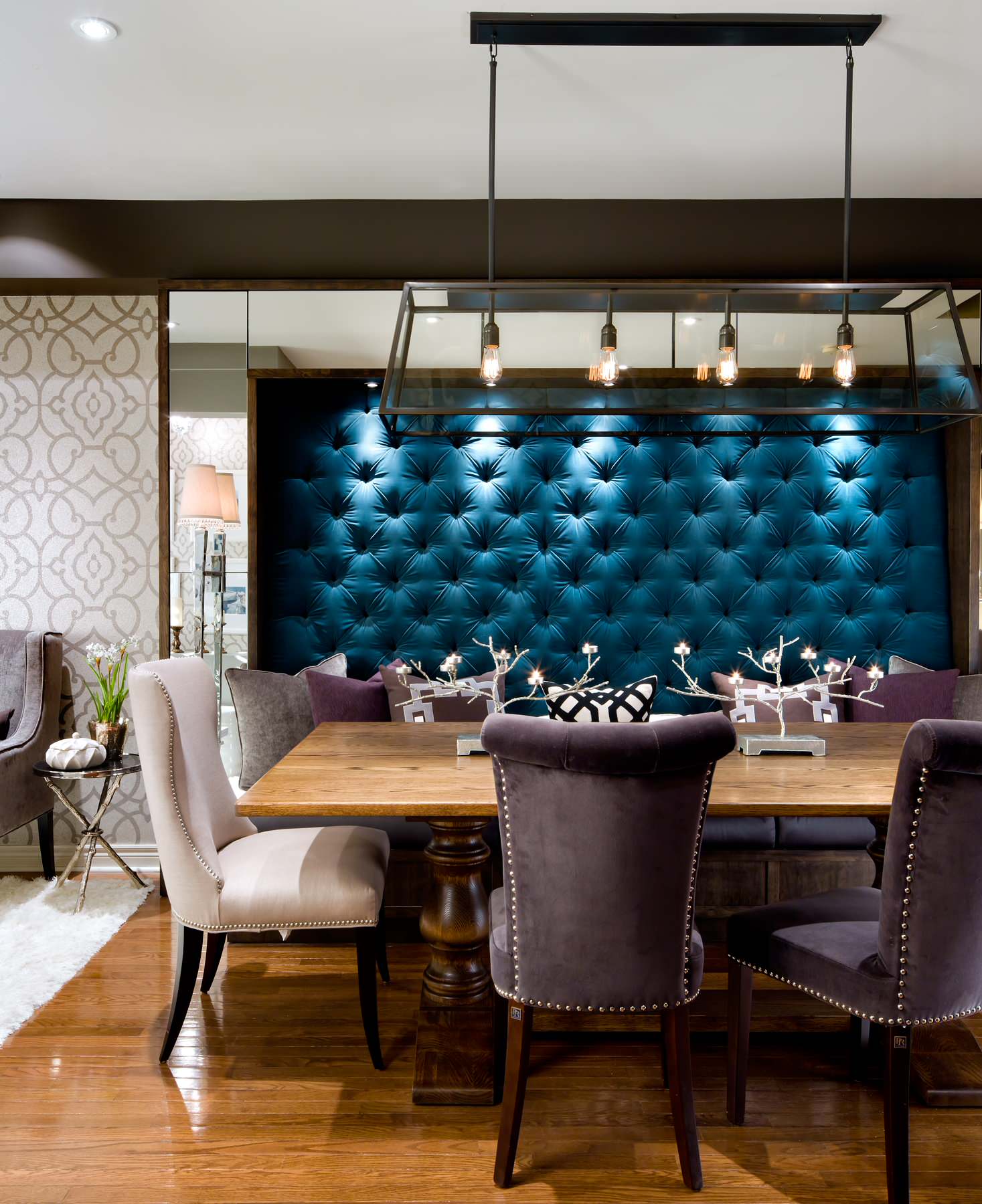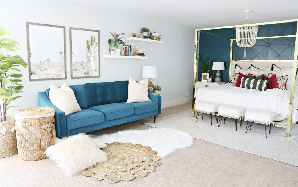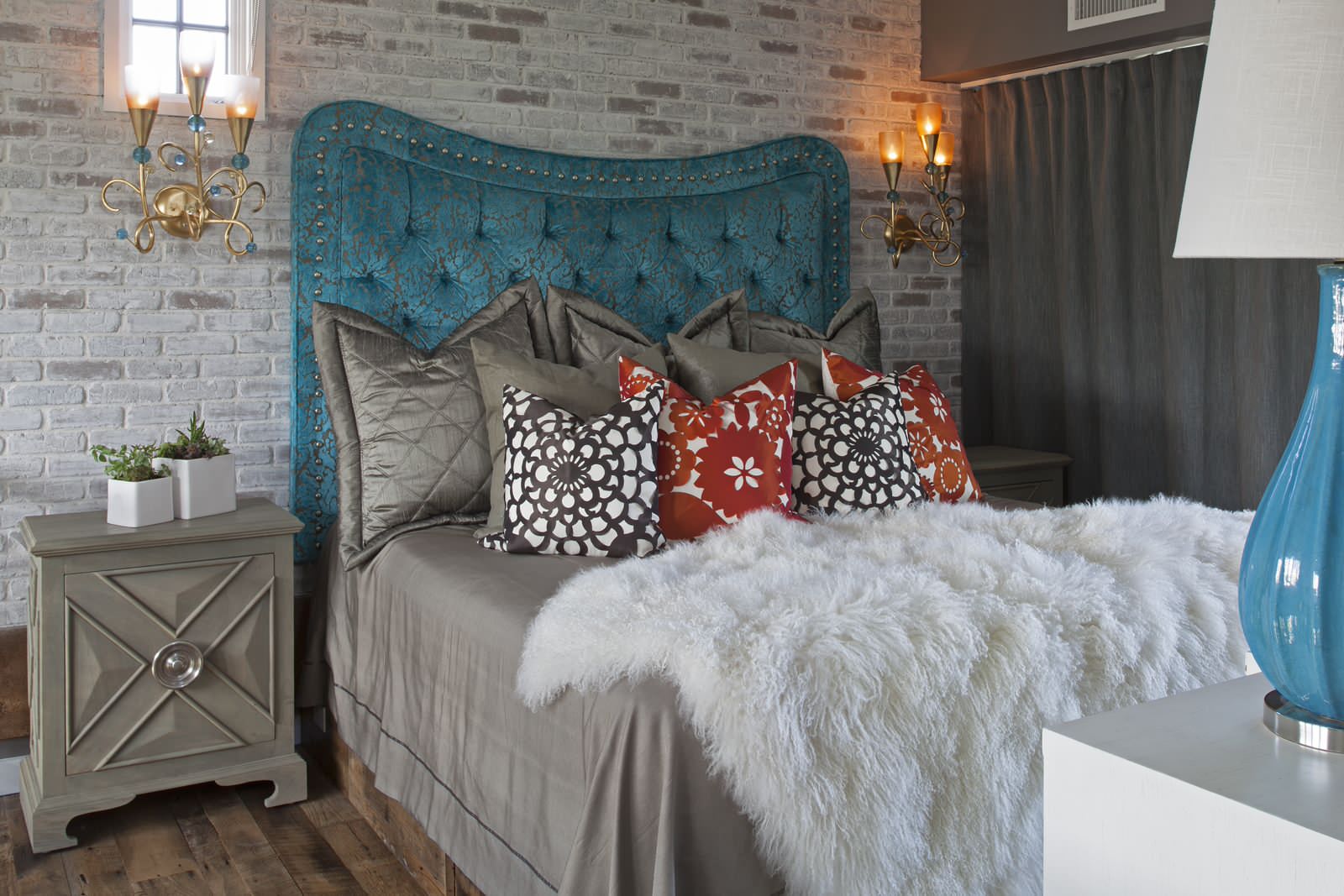 - Acessórios azul-verde (volumosos lustresseda tapetesvasos de vidro de fantasia);