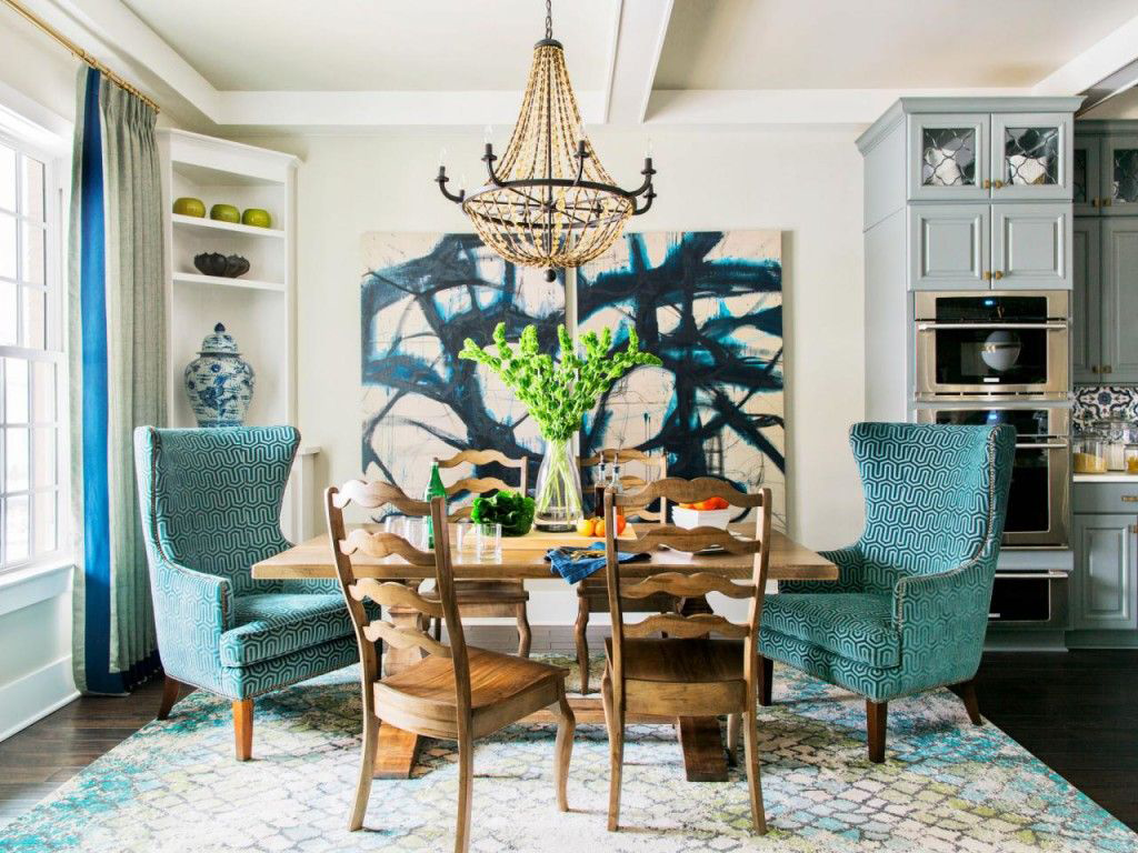 Os adeptos das soluções tradicionais de cores (bege-marrom, preto-cinza-branco) podem decorar a atmosfera familiar com coisas de ricas cores azul-esverdeadas. Para fazer isso, basta escolher alguns acessórios elegantes: