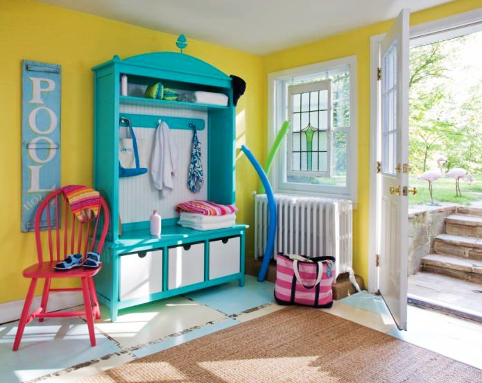 - A combinação de verde-azulado com outros tons ricos ficará muito colorida. Tal ambiente não criará uma atmosfera de relaxamento e relaxamento.