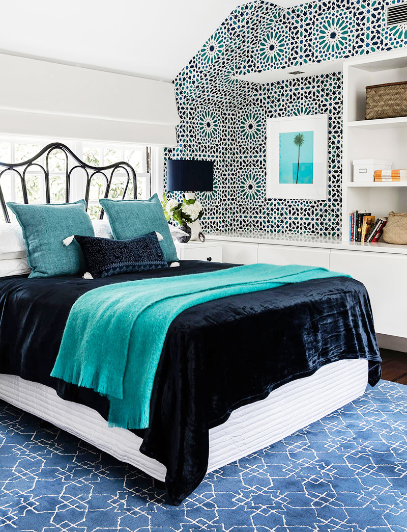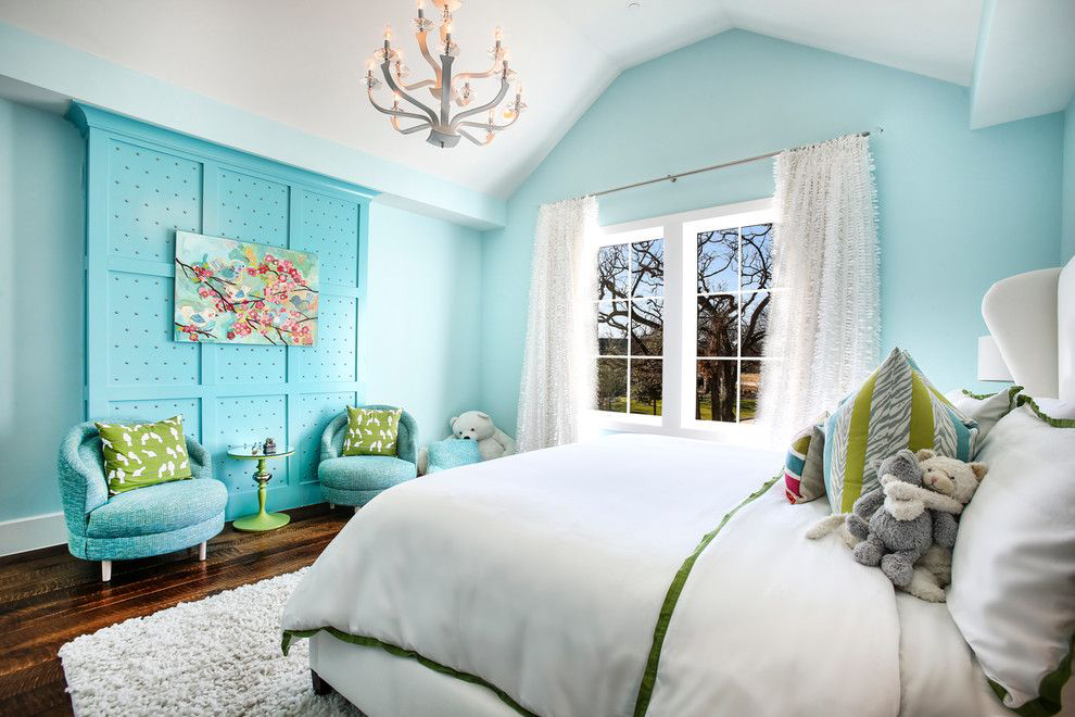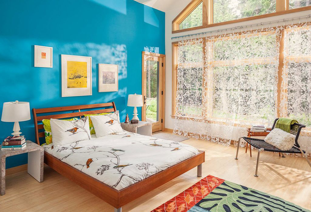 O tom de turquesa difusa traz uma sensação de frescura e tranquilidade ao quarto, recorda as férias no mar. É melhor combiná-lo com tons pastel.