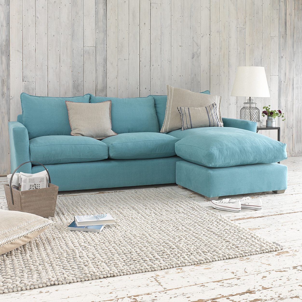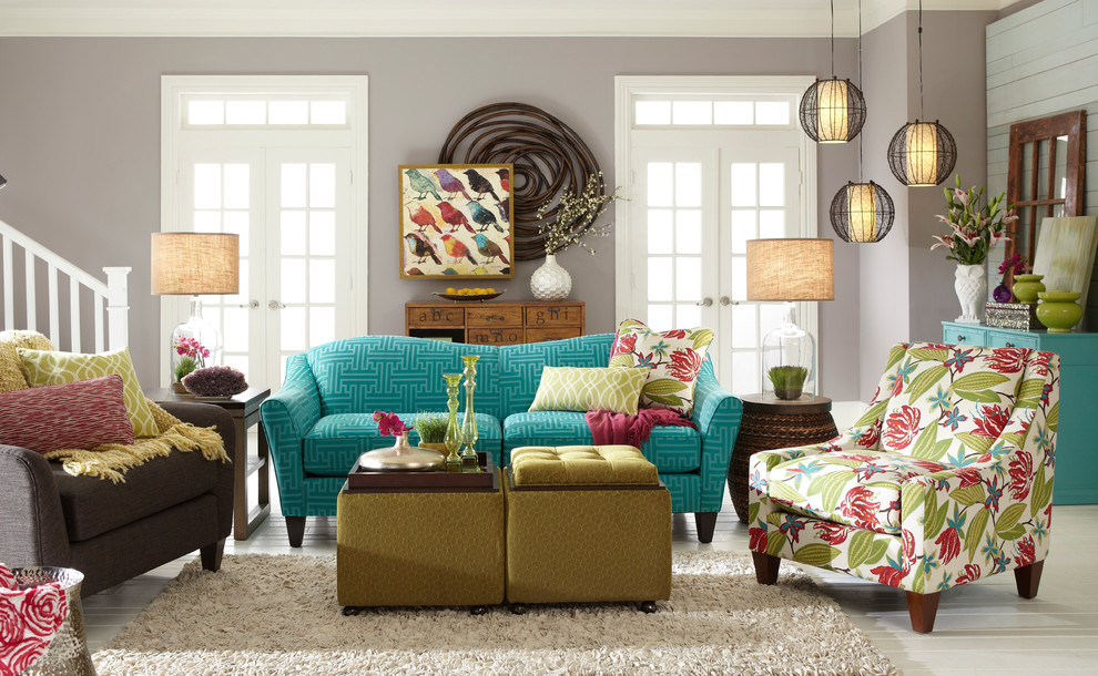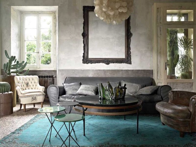 Itens de uma paleta azul-verde sempre parecerão extraordinários. Tais sofás e as cadeiras decoram quartos pequenos e espaçosos. Produtos de madeira pintados com almofadas macias criam um clima de verão da casa na costa. Tal cenário é apropriado em uma sala de estar de estilo rústico (Provence, música country).
