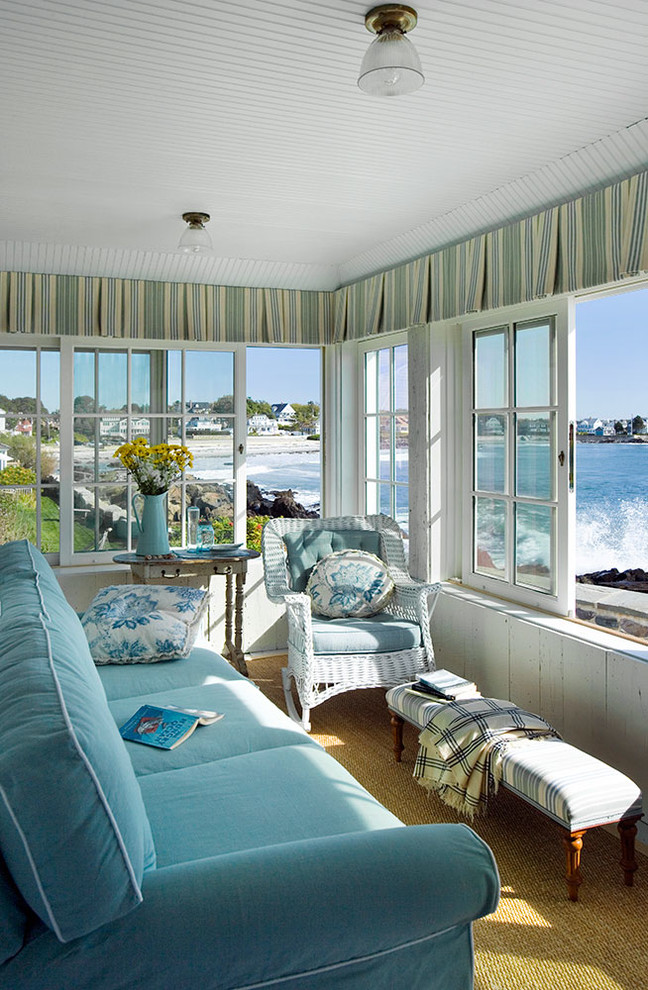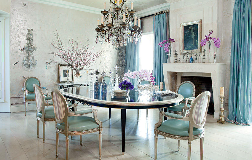 Esta é uma ótima opção para a sala provençal. A leveza do espaço será enfatizada por móveis de madeira esculpida pintada de uma cor turquesa pálida. Janelas decoram cortinas o mesmo tom (em uma pequena flor). Linho ou material de linho com um padrão floral é selecionado para almofadas interiores.O tom cremoso das paredes expandirá visualmente a sala. Um piso leve de calçadão com rachaduras naturais enfatizará a originalidade do estilo.