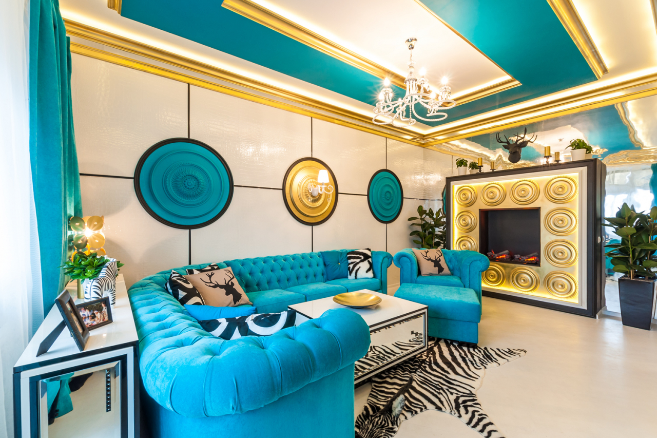 - cor turquesa se encaixa no design de qualquer sala. Basta levar em conta sua finalidade e parâmetros;