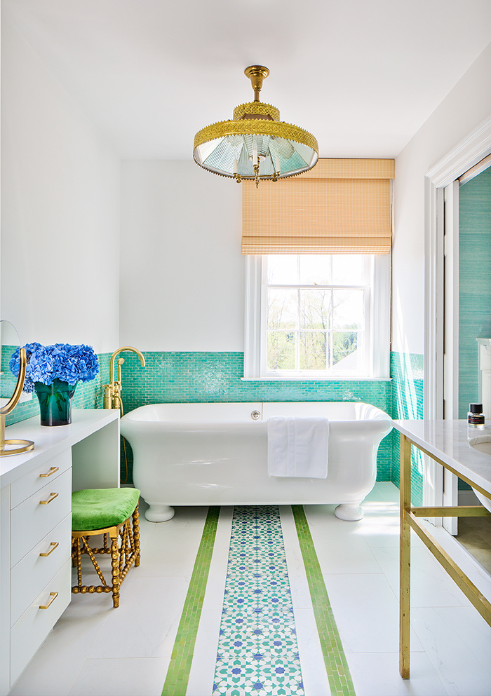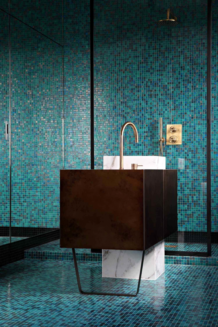 Na maioria das vezes, azul-verde é combinado com branco. Por via de regra, o encanamento leve acentua a saturação de sombras.