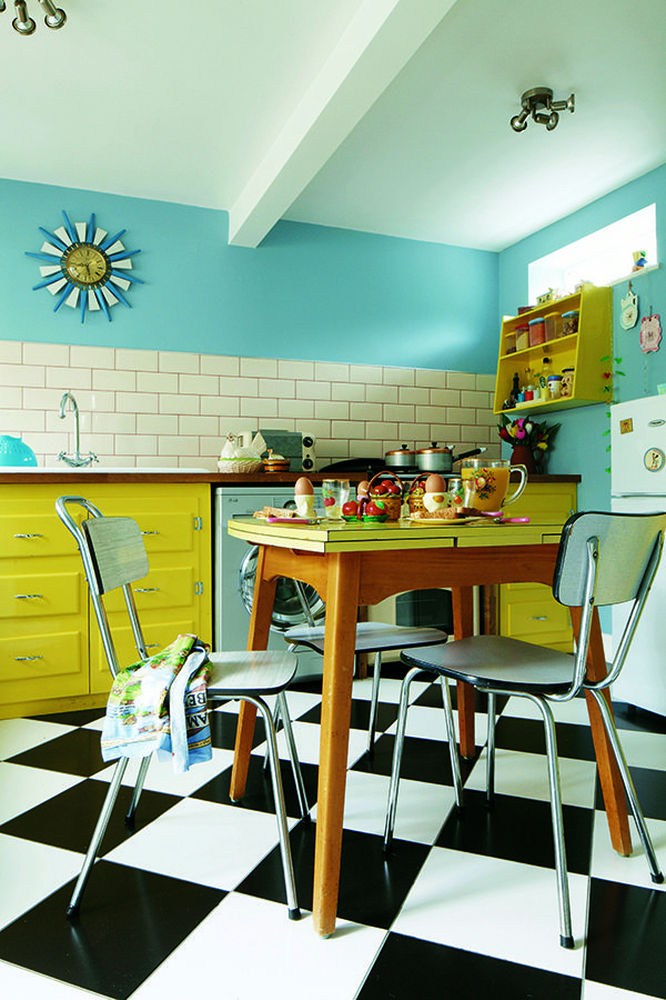 Se a escolha for feita em favor de móveis turquesa, então as paredes e o piso são feitos em tons pastéis suaves, variações de amarelo claro (creme, areia, leite assado) são mais adequadas.