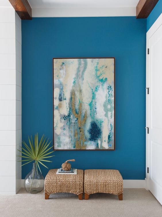 É difícil desenhar uma linha clara entre tons de verde ou azul em turquesa. Esta pintura incomum é rica em meios-tons e pode transformar a sala original para qualquer finalidade.