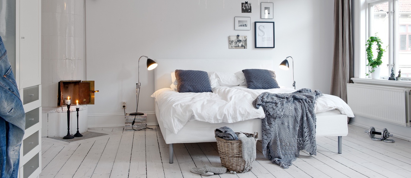 Eles garantem uma transição suave, não deixam o quarto frio. A opção vencedora: piso em antracite, paredes cinzentas neutras e mobília branca como a neve.