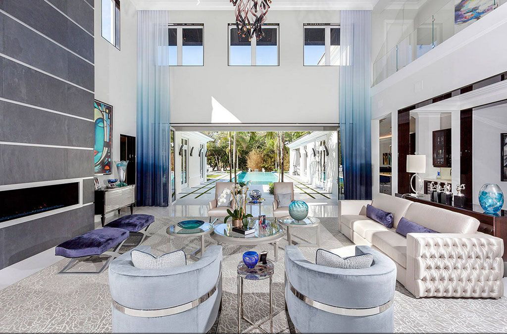 Molduras de madeira espelhospinturas, as portas, mesasdetalhes sofás interior monocromático diluído. O mesmo efeito dá a cor verde de viver e artificial de plantas - flores, árvores, palmeiras. Eles dão aos quartos um charme sofisticado.