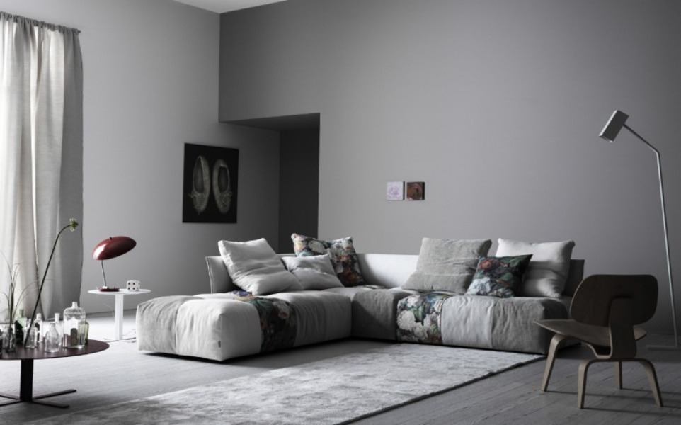 As direcções de design moderno utilizam plástico, metal niquelado, vidro decorativo e gama de cores. Para itens feitos com esses materiais, paredes cinza estritas estão se tornando um quadro elegante.. Eles não distraem a atenção, mas dão foco aos itens internos.