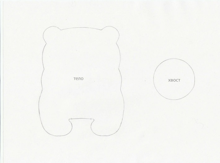 O estêncil é aplicado ao tecido, delineado ao longo do contorno com um simples lápis ou caneta. Então, cuidadosamente, corte com uma tesoura. Para costurar um brinquedo, você precisa fazer dois padrões.