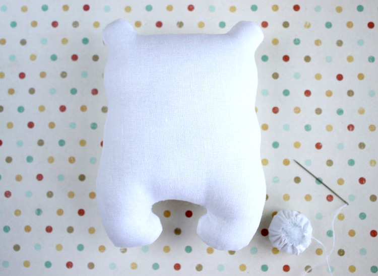 Quando o brinquedo estiver completamente cheio com o preenchimento selecionado, o lugar da esquerda pode ser costurado.