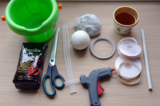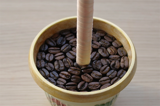 - A árvore é colocada em um vaso de flores. Para café topiariya cerâmica adequada ou faiança. Os materiais criarão um efeito natural em torno da composição, além de tornar o ofício inteiro mais sustentável.