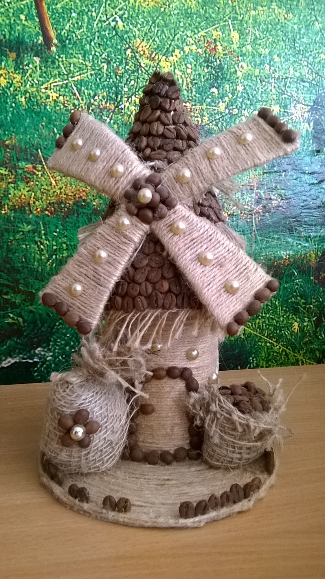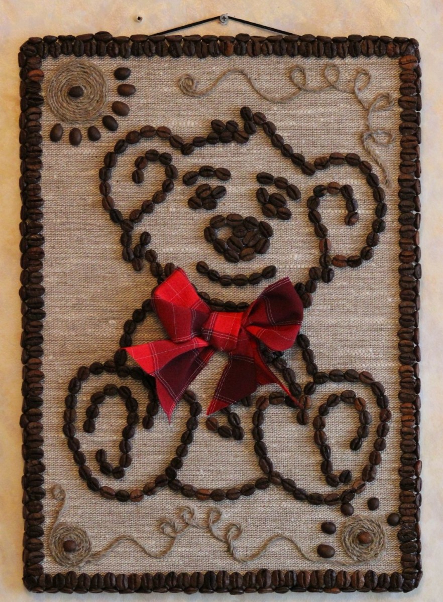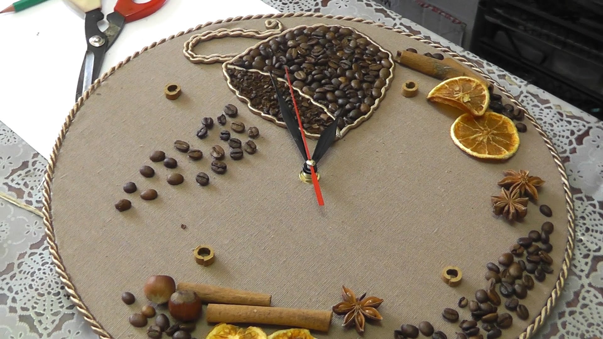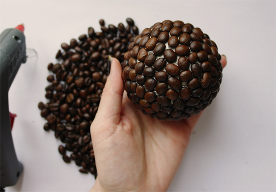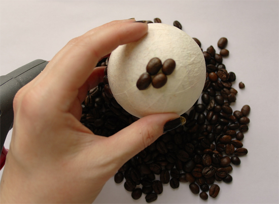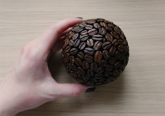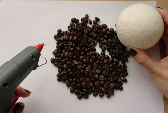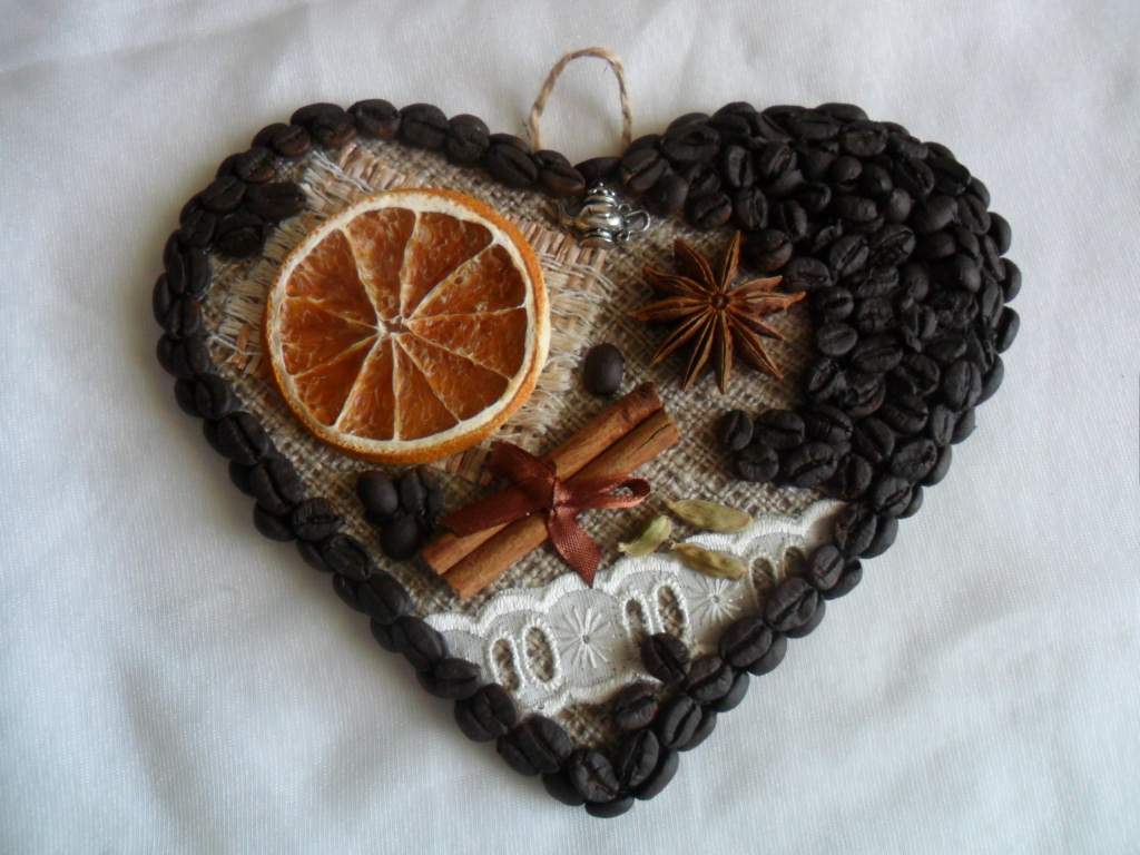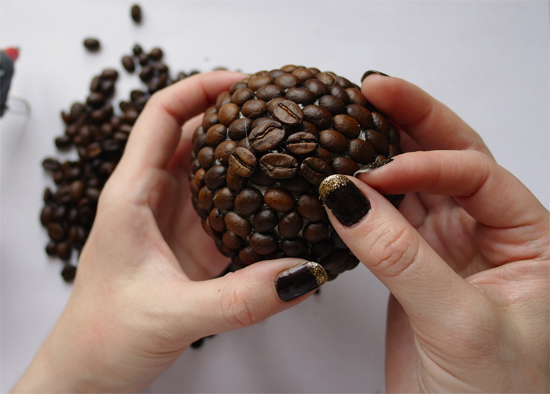 - Topo redondo. Para fazer isso, use uma variedade de itens, mas o melhor parece artesanato de grãos de café.
