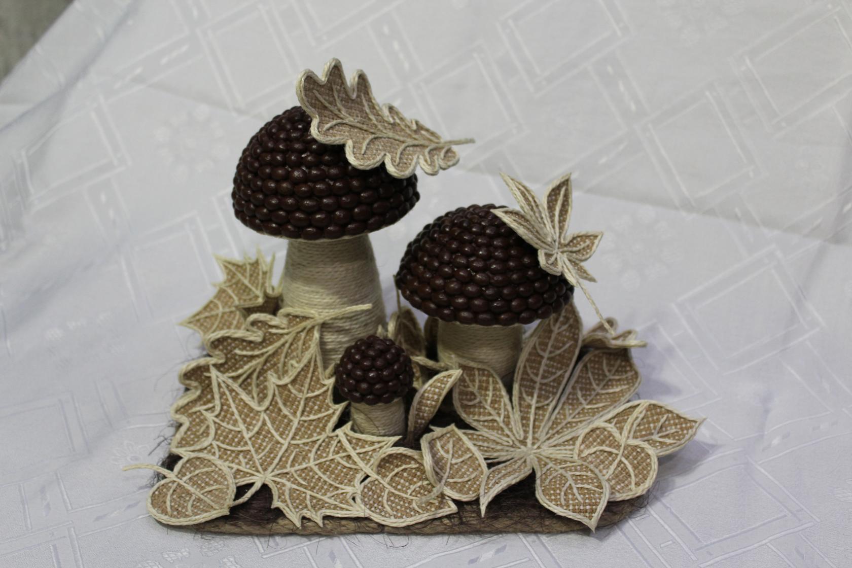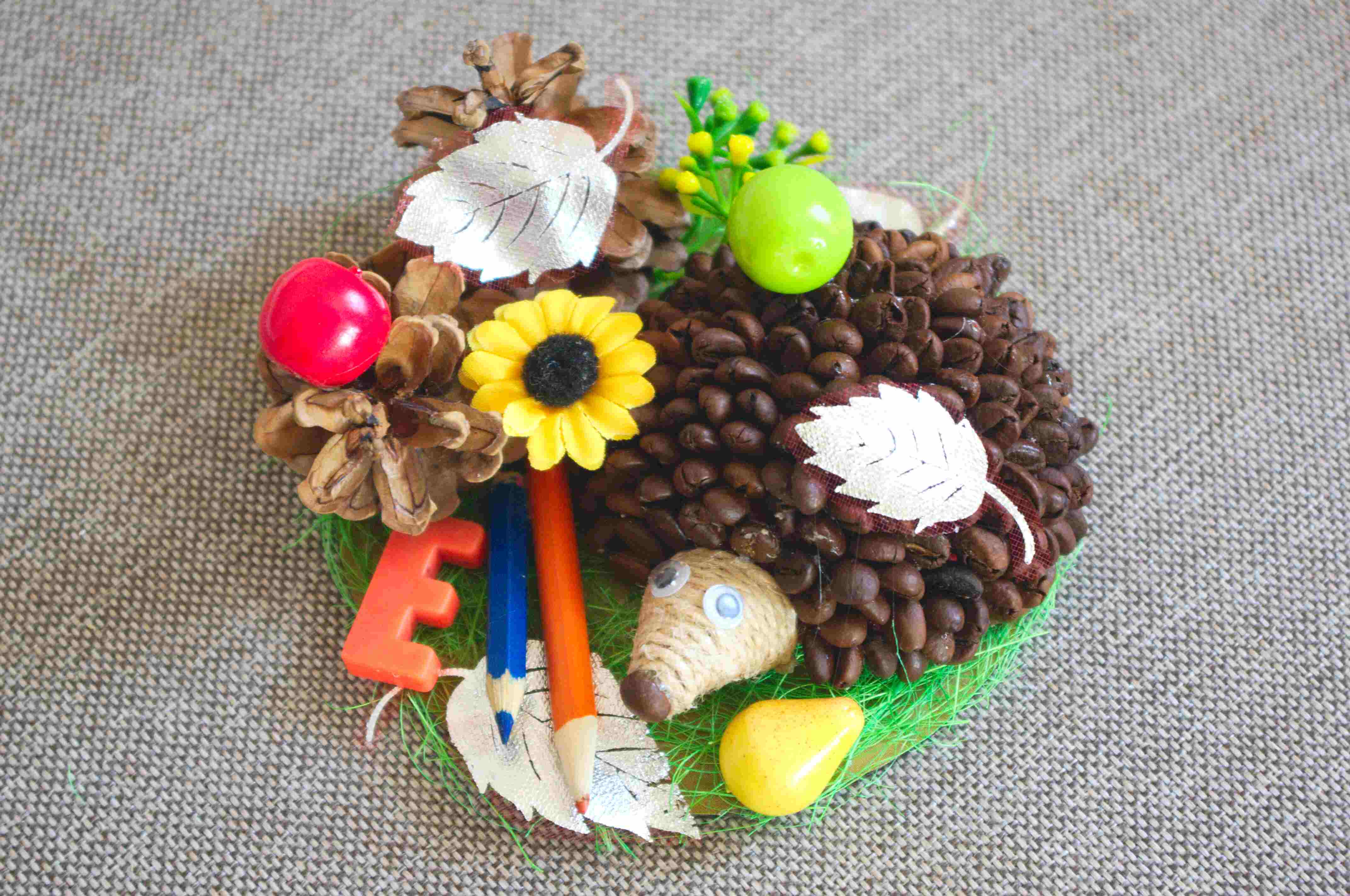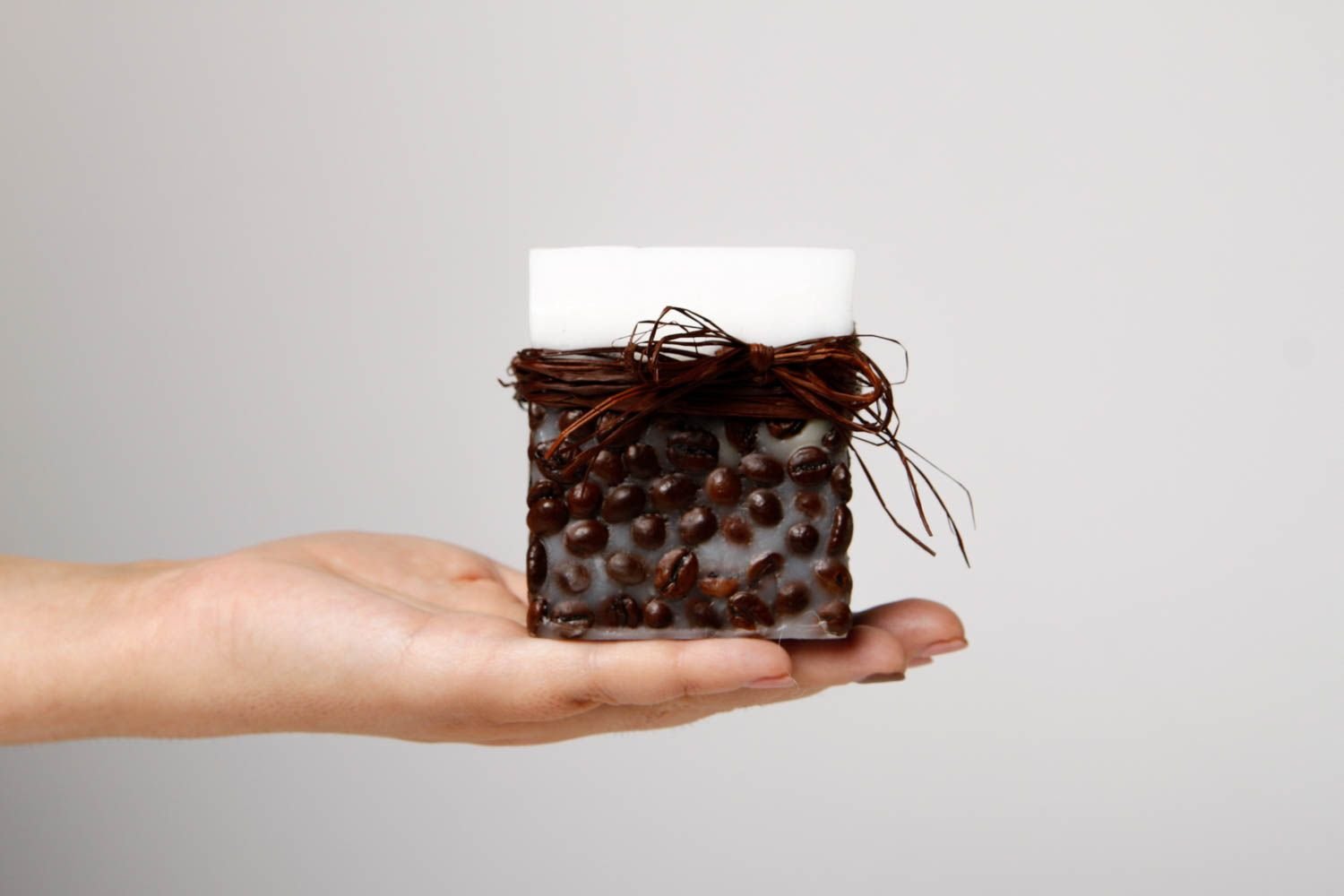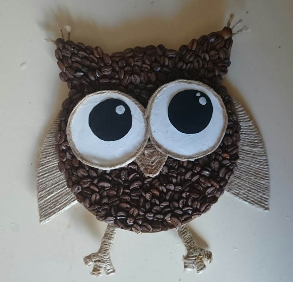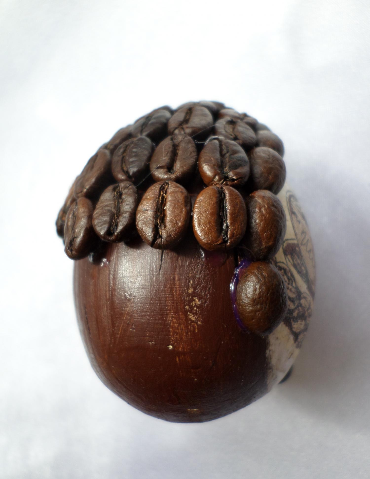 - Topo redondo. Para fazer isso, use uma variedade de itens, mas o melhor parece artesanato de grãos de café.