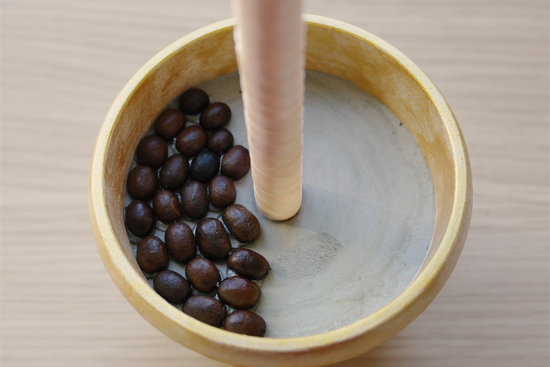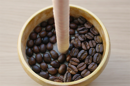 - Cole grãos de café em sua superfície em uma camada uniforme.