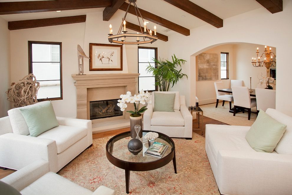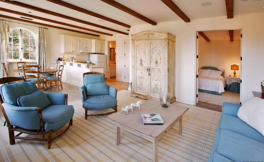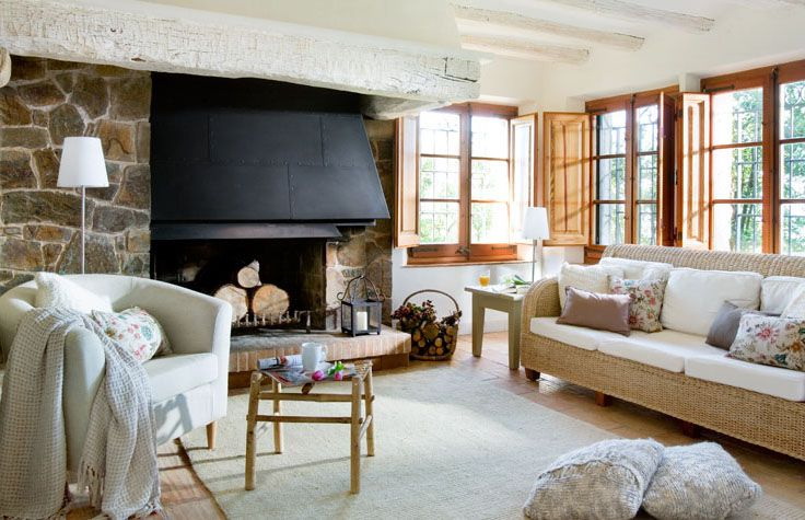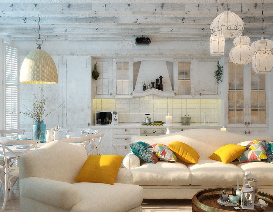 Tem uma construção simples: “menos é melhor” é o lema que cabe aqui. Decorações típicas serão forjadas decorações de parede e arandelas. Original imagens em baguetes ricas, pequenos arranjos de flores ou fotos adicione sabor ao Velho Mundo. Você pode espalhar travesseiros macios com pequenas estampas florais ou usar esta cor para estofamento. Uma mistura de decoração simples, cores suaves, materiais naturais são típicos do estilo country de decoração.