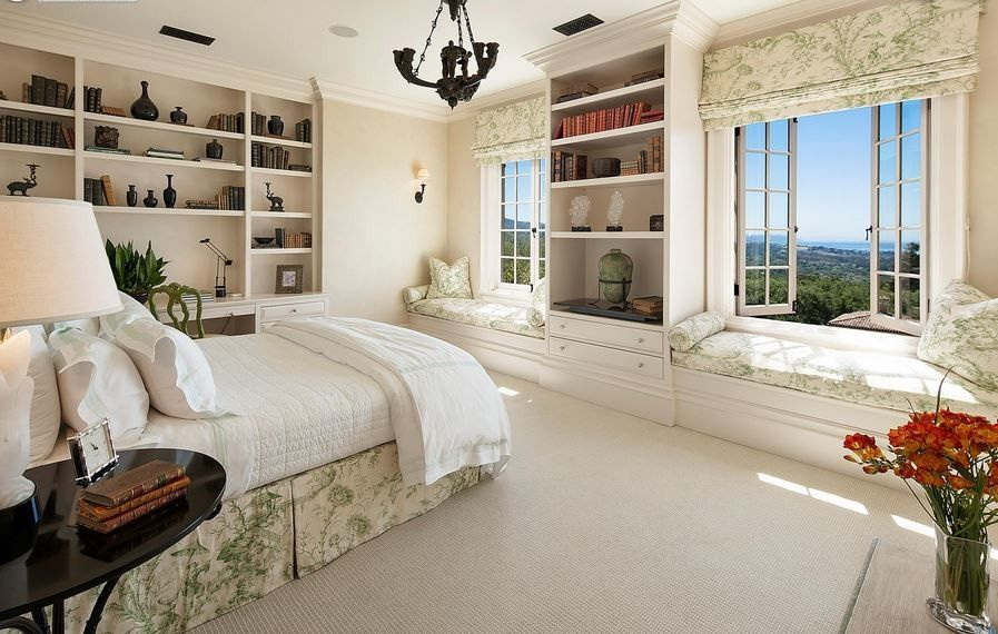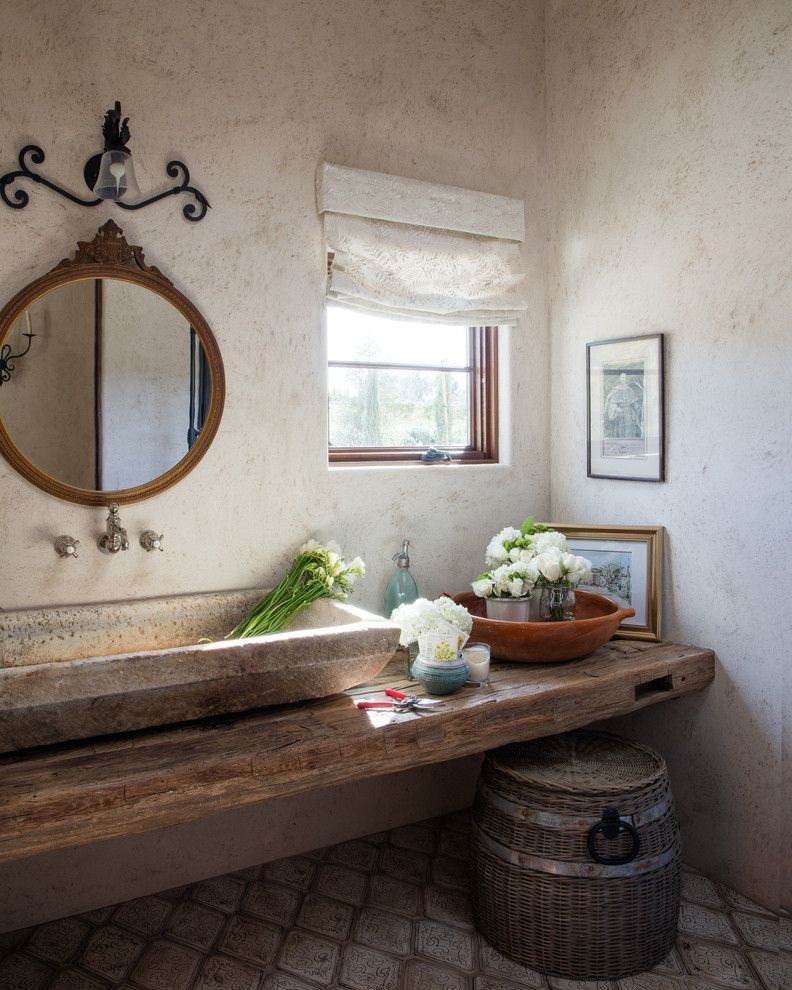 Telha de terracota, algodão carpetemulticolorido travesseiros, as tradicionais decorações toscanas nas paredes criarão uma ilha de serenidade do seu quarto. Cortinas de janela de algodão com pequenos padrões florais ou listrados, decoradas com renda na parte inferior e nas bordas são práticas e delicadas.