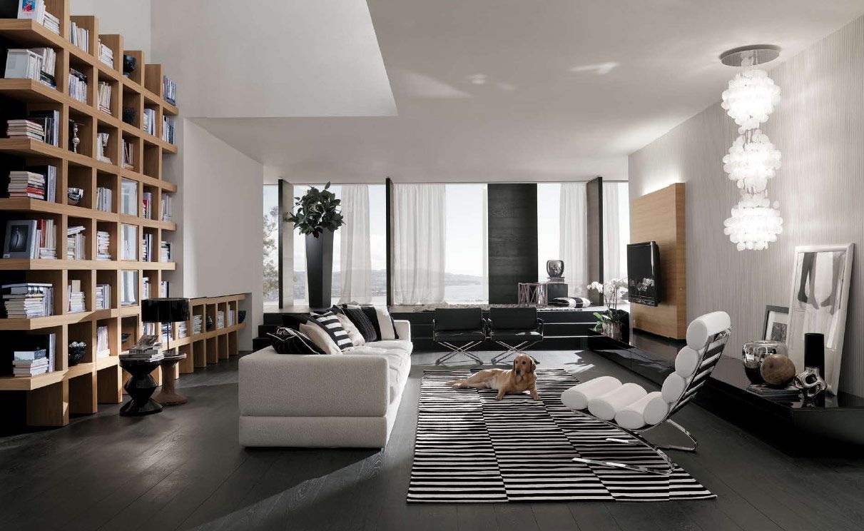 Nele, o mobiliário é mais suave, menos ornamentado, mas o mesmo nível de luxo é mantido, graças ao nível de qualidade usado nessas casas. Design italiano moderno é mais limpo, um pouco mais pretobranco do que tradicional. No entanto, ainda há sotaques que gritam sobre o luxo, por exemplo, um lustre de cristal inesperado ou um acessório brilhante que você normalmente não encontrará na modernidade. minimalista casa.