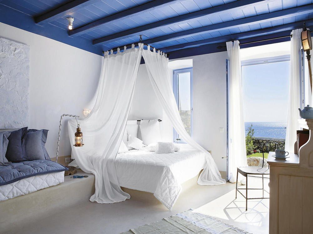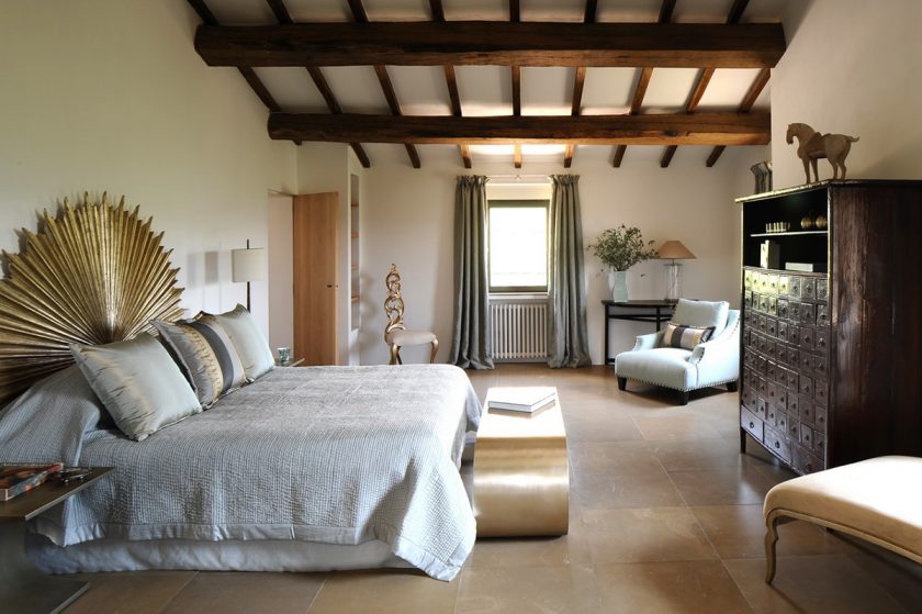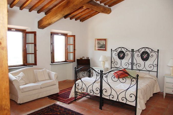 A beleza do céu claro, ciprestes, neblina matinal criam quartos arejados para uma boa noite de sono - conheça esta romântica Toscana. Azul suave, verde, amarelo, rosa, o vermelho - As cores principais do quarto e da mobília. Móveis de madeira, persianas e vigas de teto também são elementos brilhantes que definem o estilo.