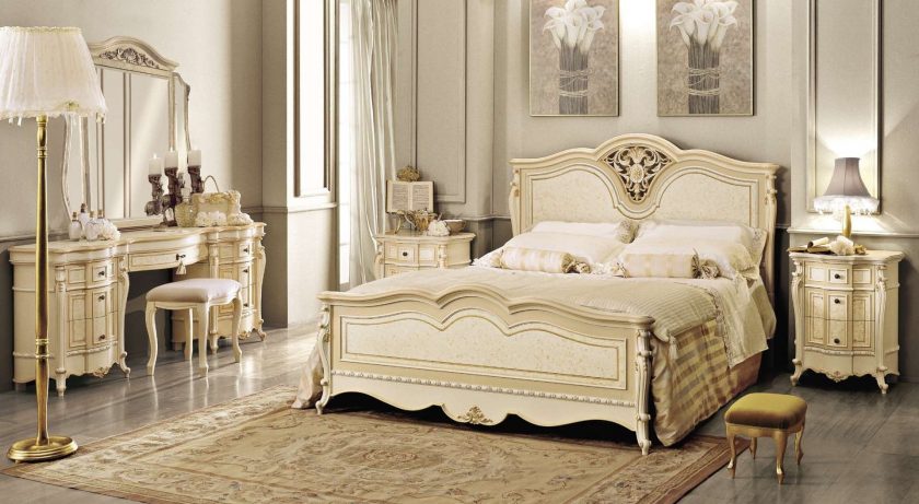 Mobiliário italiano e decoração não são apenas elegantes, mas versáteis. Sua beleza eterna combina bem com móveis de madeira, decorações aconchegantes, acessórios em qualquer estilo que sejam simples, não sistêmicos. Este quarto vai olhar igualmente bom em uma mansão de luxo e em um pequeno urbano plano, idéias para isso podem ser bastante flexíveis.