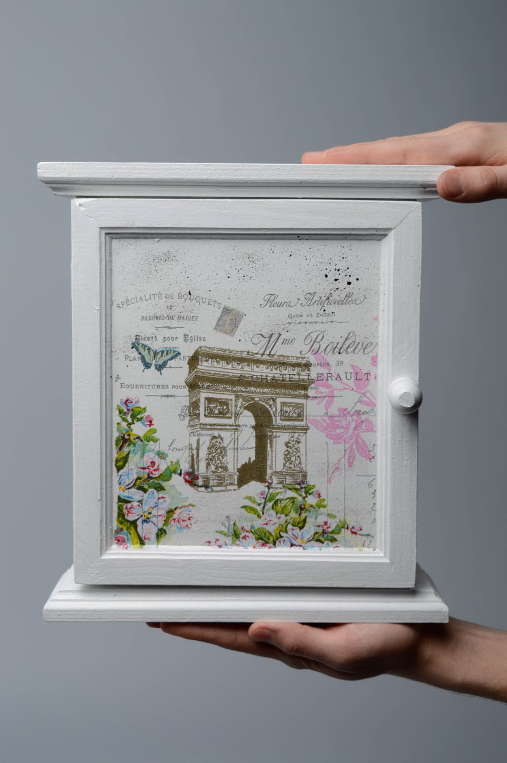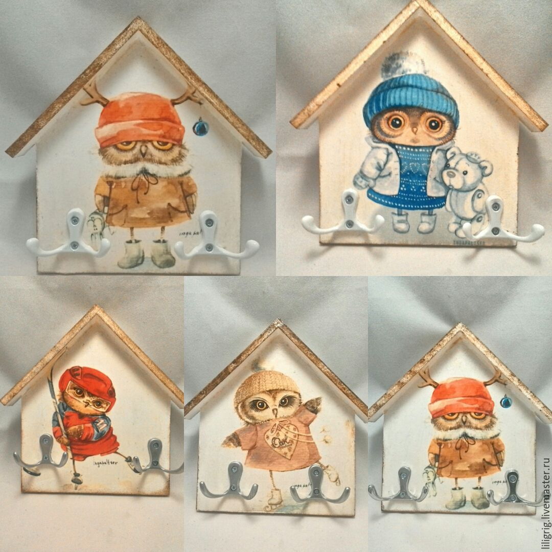 O lado prático não é a única vantagem. Ainda há estética, porque você pode fazer uma empregada em qualquer estilo. Você tem um hall de entrada, feito em eco? Nada se encaixa melhor do que uma chave de um galho de árvore. Alta tecnologia? Um pequeno e elegante porta-chaves de metal combina com ele. Provença? Decoupage com flores ou pássaros. Clássico? Forma estrita da placa de laca de madeira.