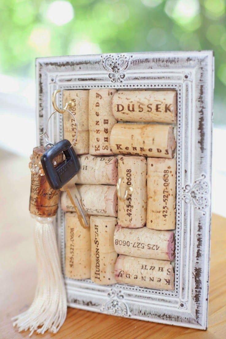 Uma opção mais simples que é mais adequada para um estilo ecológico é encontrar uma varinha fina e pendurar rolhas sobre ela em linhas brilhantes. Coloque um gancho em cada rolha e pendure a chave nele.