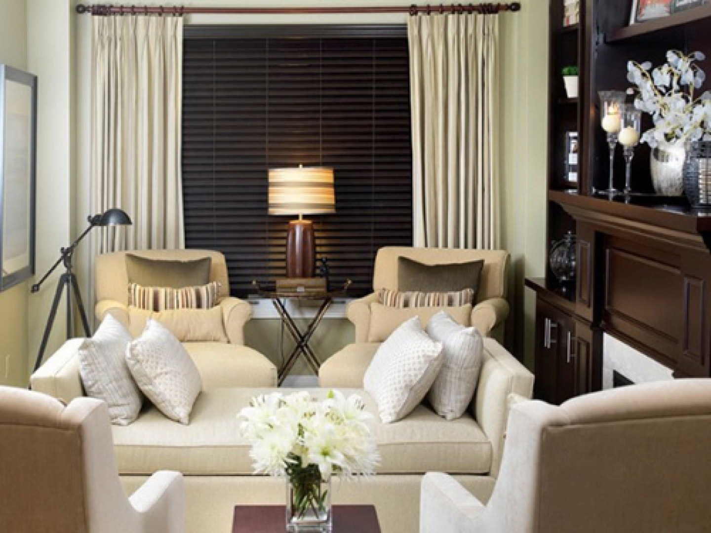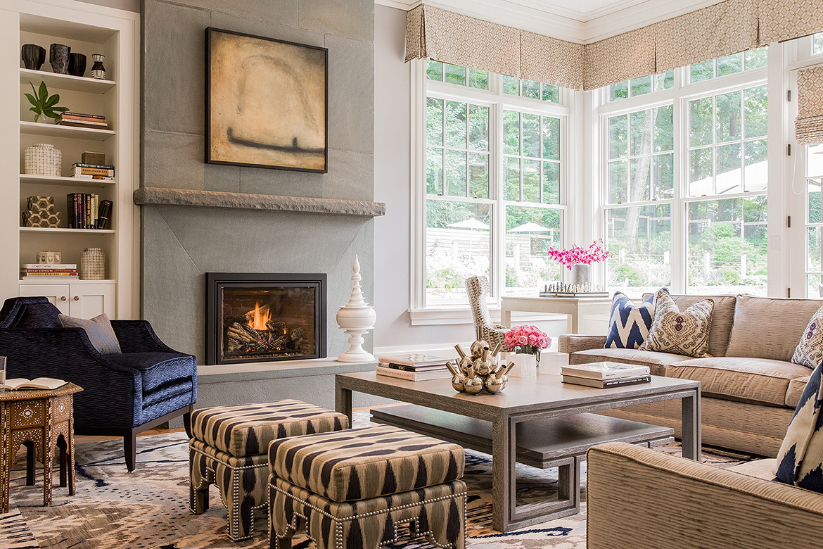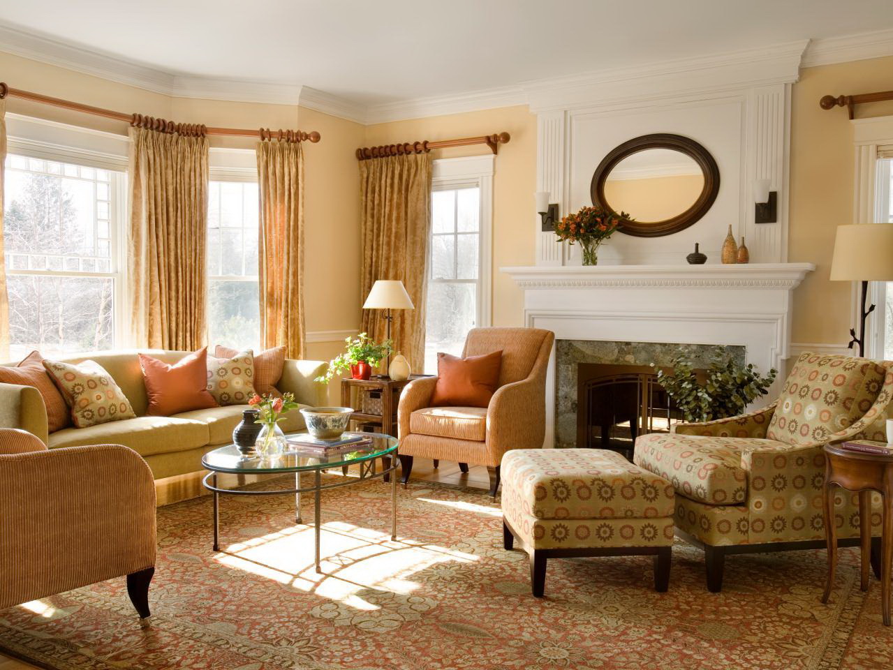Para salas de estar com lareira, o objetivo mais importante, segundo a maioria das pessoas, é uma conversa. Assim, o design semicircular de móveis ao redor da casa, não mais que 2,5 m entre os assentos, facilita a interação fácil com a família e os amigos. Para salas de estar onde não há lareira nem TV, o foco central tem o maior significado. Coloque um sofá (ou dois, de frente um para o outro) ao redor da mesa de café, com cadeiras, dispostas em forma de círculo para fechar quaisquer lacunas.