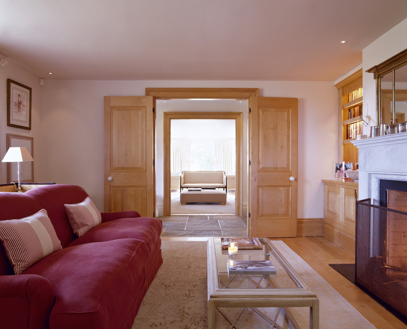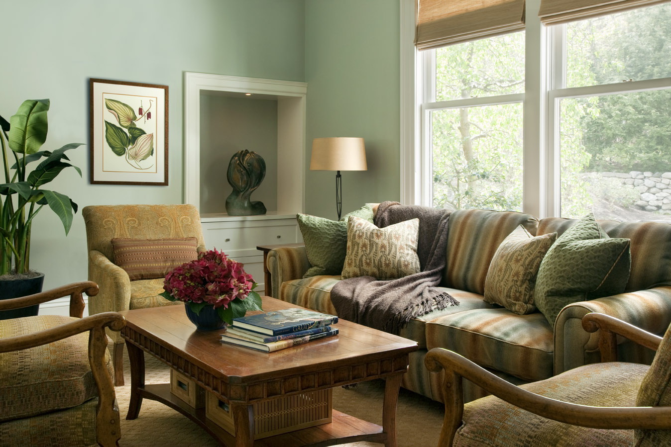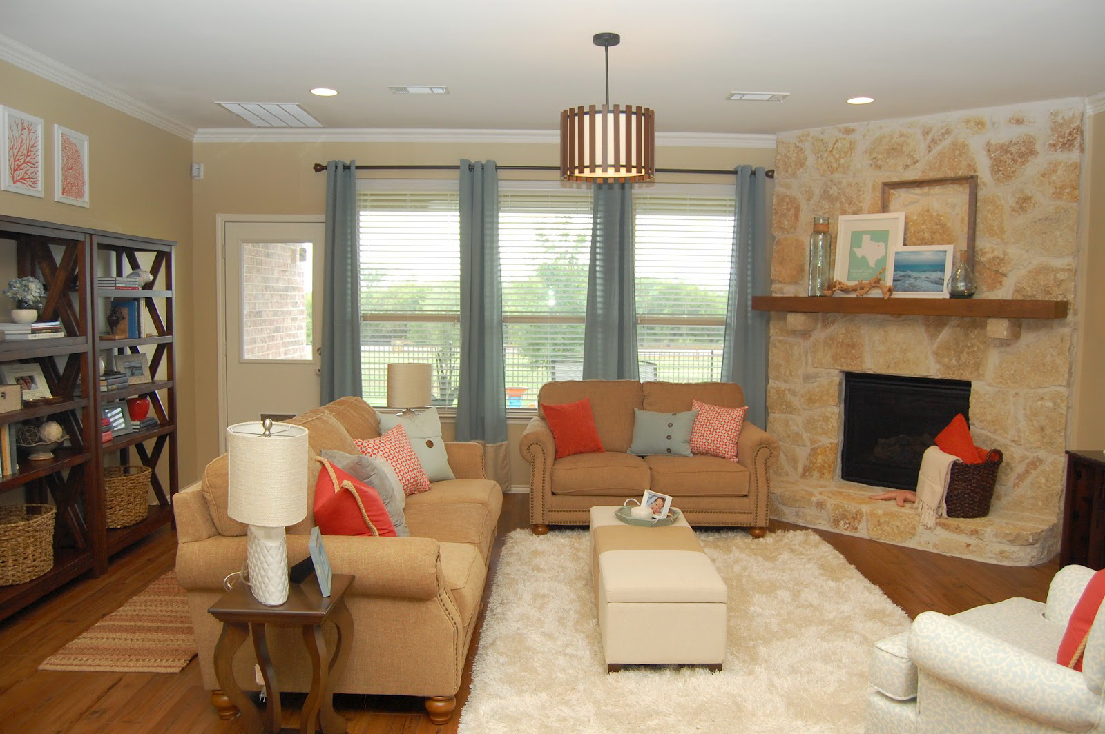 Para salas de estar com lareira, o objetivo mais importante, segundo a maioria das pessoas, é uma conversa. Assim, o design semicircular de móveis ao redor da casa, não mais que 2,5 m entre os assentos, facilita a interação fácil com a família e os amigos. Para salas de estar onde não há lareira nem TV, o foco central tem o maior significado. Coloque um sofá (ou dois, de frente um para o outro) ao redor da mesa de café, com cadeiras, dispostas em forma de círculo para fechar quaisquer lacunas.