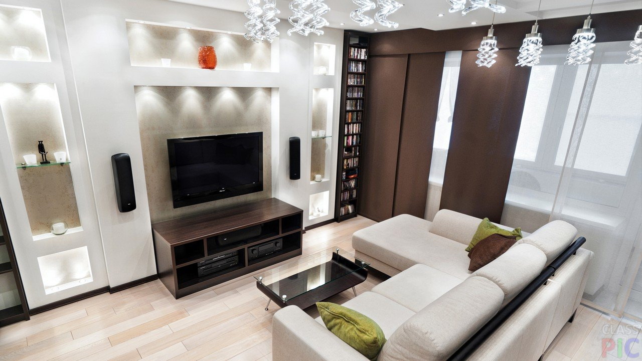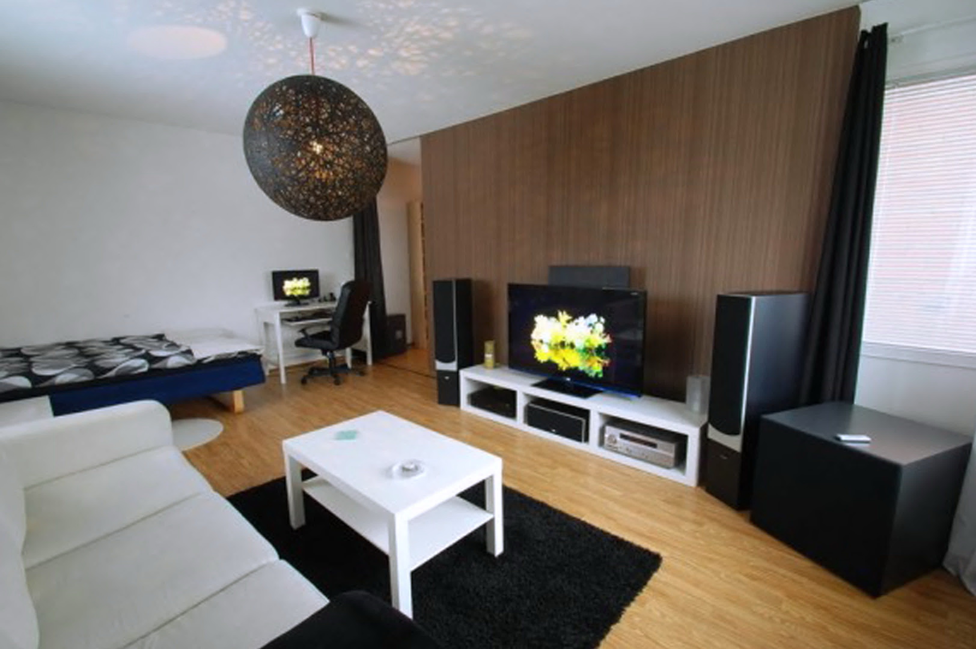 Se a sala de estar tiver uma TV, observe que a distância de visualização de uma TV padrão está entre 2,5 e 3,5 m, e o ângulo de visão não é superior a 30 graus.Assim, o sofá principal, sofá ou seção deve estar localizado em frente a esta parede. Cadeiras e espreguiçadeiras adicionais também podem ser instaladas em ambos os lados da parede com uma TV, arredondando a área de estar, acrescentando equilíbrio visual.