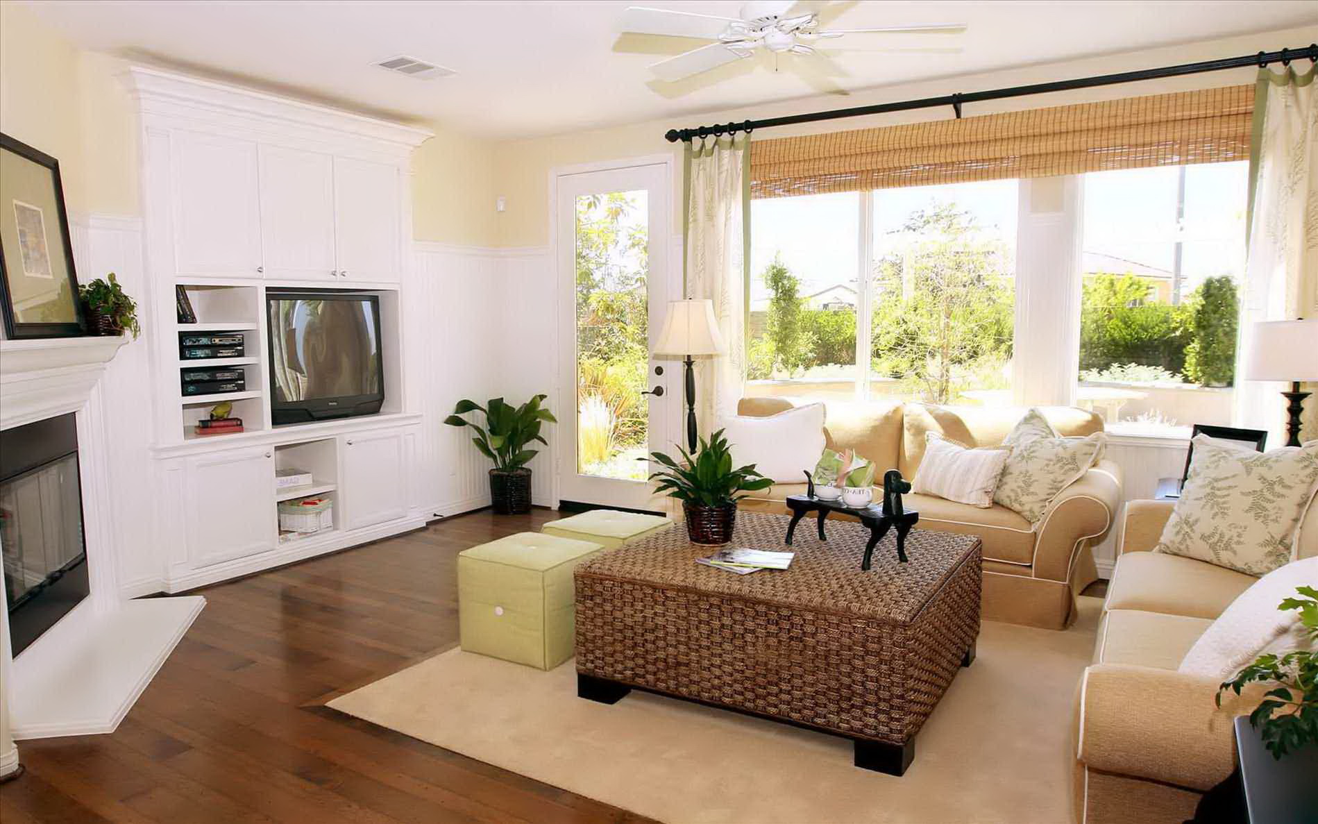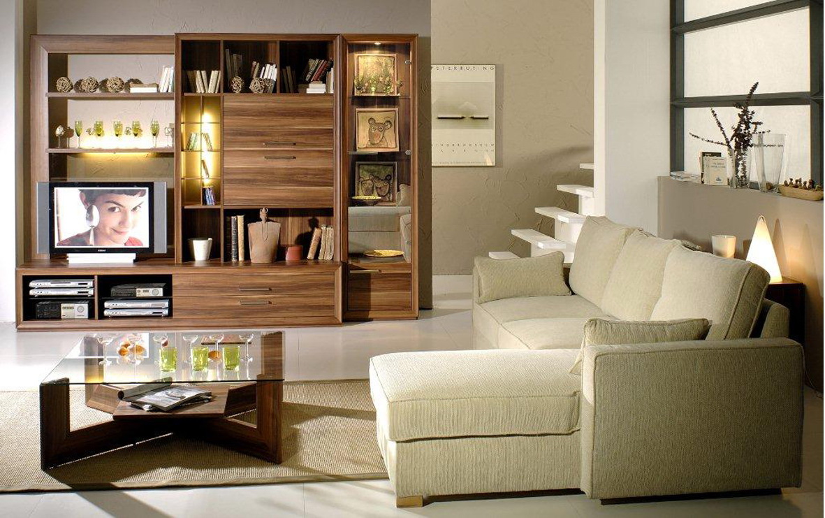 Quando a área de assento estiver instalada (em volta do centro focal), coloque a mesa e o armário ao lado deles. Na sala de estar, a mesa de café principal ou otomano pode ser colocada entre o sofá e as cadeiras. É melhor deixar 50 cm entre a mesa de café e o sofá para que as bebidas e o controle remoto da TV estejam ao alcance. Um armário pode ser colocado atrás do sofá.