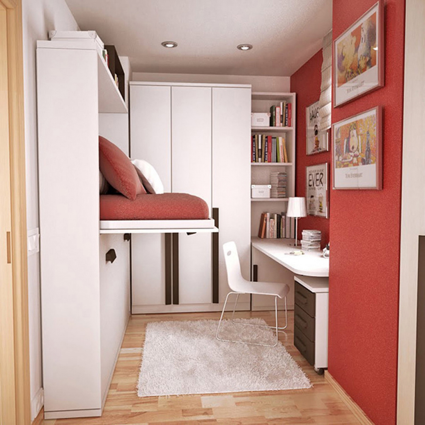 Extras: se você não tiver um guarda-roupa grande, escolha cabides para roupas. Coloque um pequeno banco ou cadeira ao lado deles para qualquer finalidade, por exemplo, como um lugar para um saco para que nada fique no chão. Os espelhos também ajudarão a sala a parecer maior, então use alguns espelhos que possam ser colocados estrategicamente.