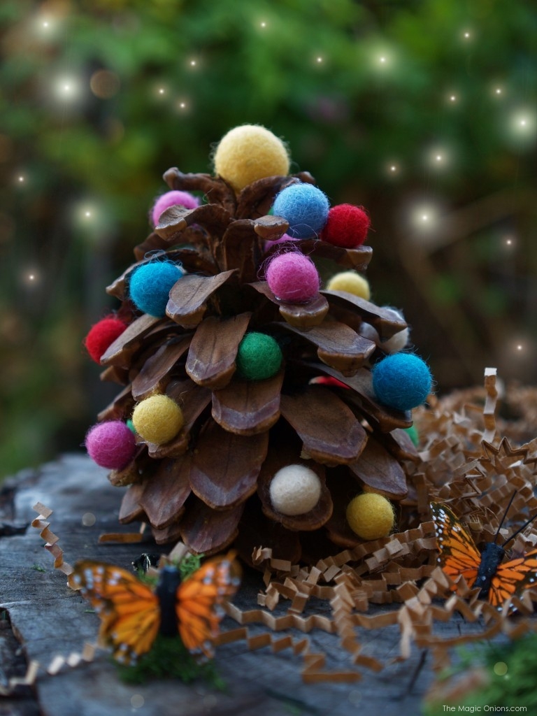 Para fazer um belo artesanato, não é necessário fazer personagens de desenhos animados, o brinquedo em forma de caroço já é um lindo acessório de Natal para decoração.