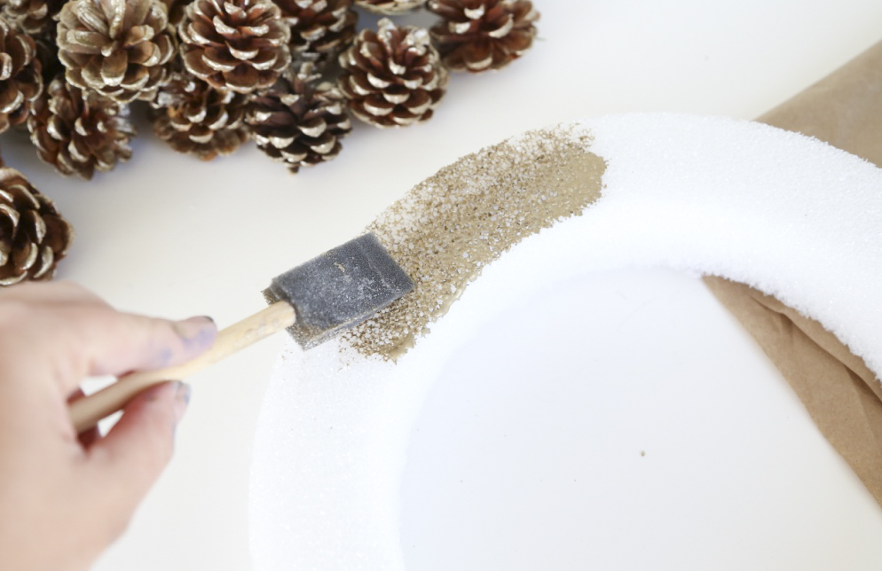 Agora você pode começar a pintar a bola de Natal, a cor pode ser qualquer coisa, tudo depende da ideia criativa. Além disso, isso fará com que as lacunas entre as matérias-primas naturais coladas sejam imperceptíveis. Em seguida, o trabalho estranho seca novamente.