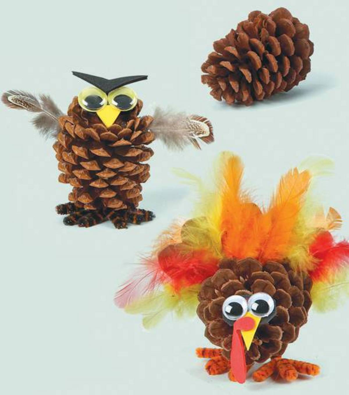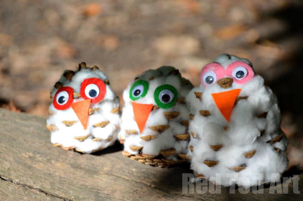 Um dos artesanatos mais originais será gnomos ou corujas. Para fazer isso, você precisa preparar feltro colorido e fazer gorros para cabeças de gnomos, luvas e barbas. Se for uma coruja, é necessário fazer pequenos bicos, asas e olhos.