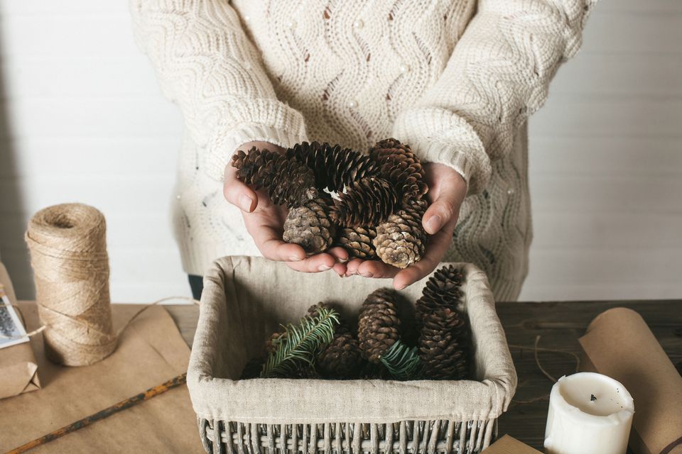 É melhor coletar matérias-primas para brinquedos na floresta de coníferas, pois elas terão um cheiro mais pronunciado. Mas se isso não for possível, você pode ir ao parque mais próximo.