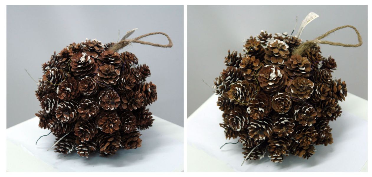 O próximo passo, o mais interessante e esperado, é a colagem de materiais naturais. Aqui vale a pena observar a precisão, já que nesta fase muitos perfuram ou forçam uma bola. Normalmente as colisões são colocadas o mais próximo possível umas das outras, isso criará um efeito de pompa.