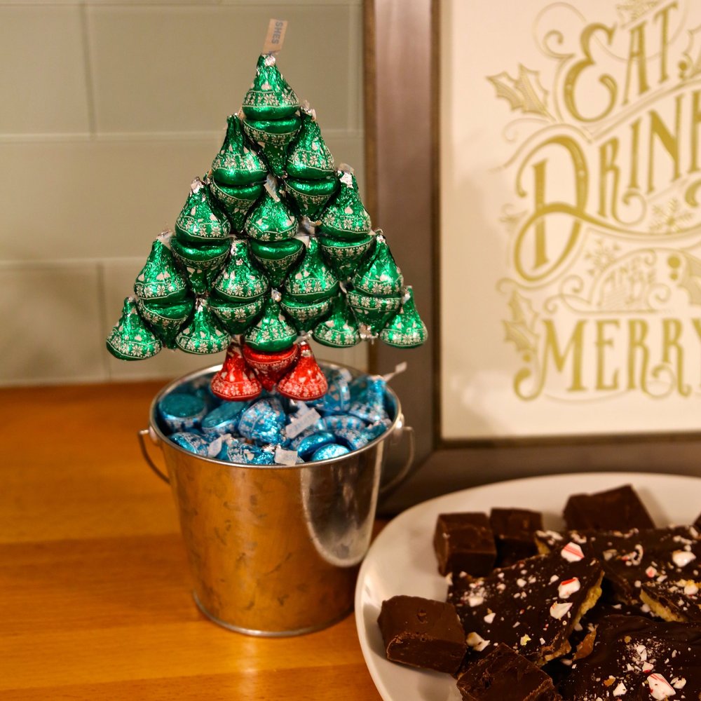 Chegando à montagem do produto. Colocamos o abeto acabado no boleto com um pote. Na fase final, decoramos artesanato com serpentinas e arcos de embalagem.