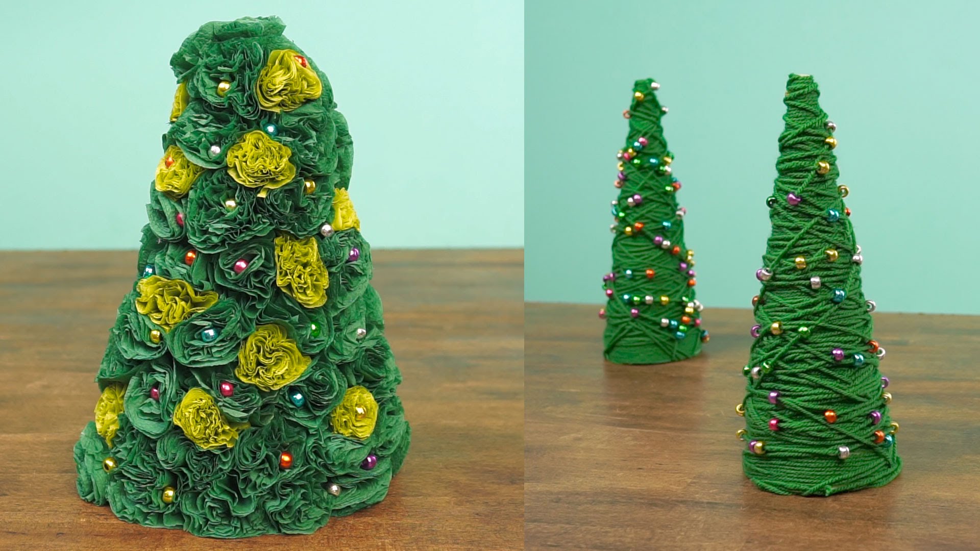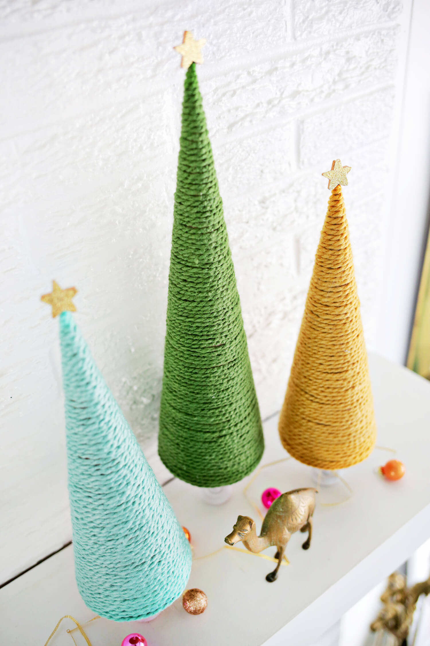 - Em seguida, pegue o fio da sua cor favorita e envolva o espaço em branco em um círculo, começando pela parte inferior. Para confiabilidade, você pode usar cola PVA, garantindo o início e o fim do encadeamento. Um pouco de tempo e a árvore mais simples está pronta.