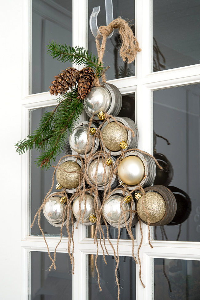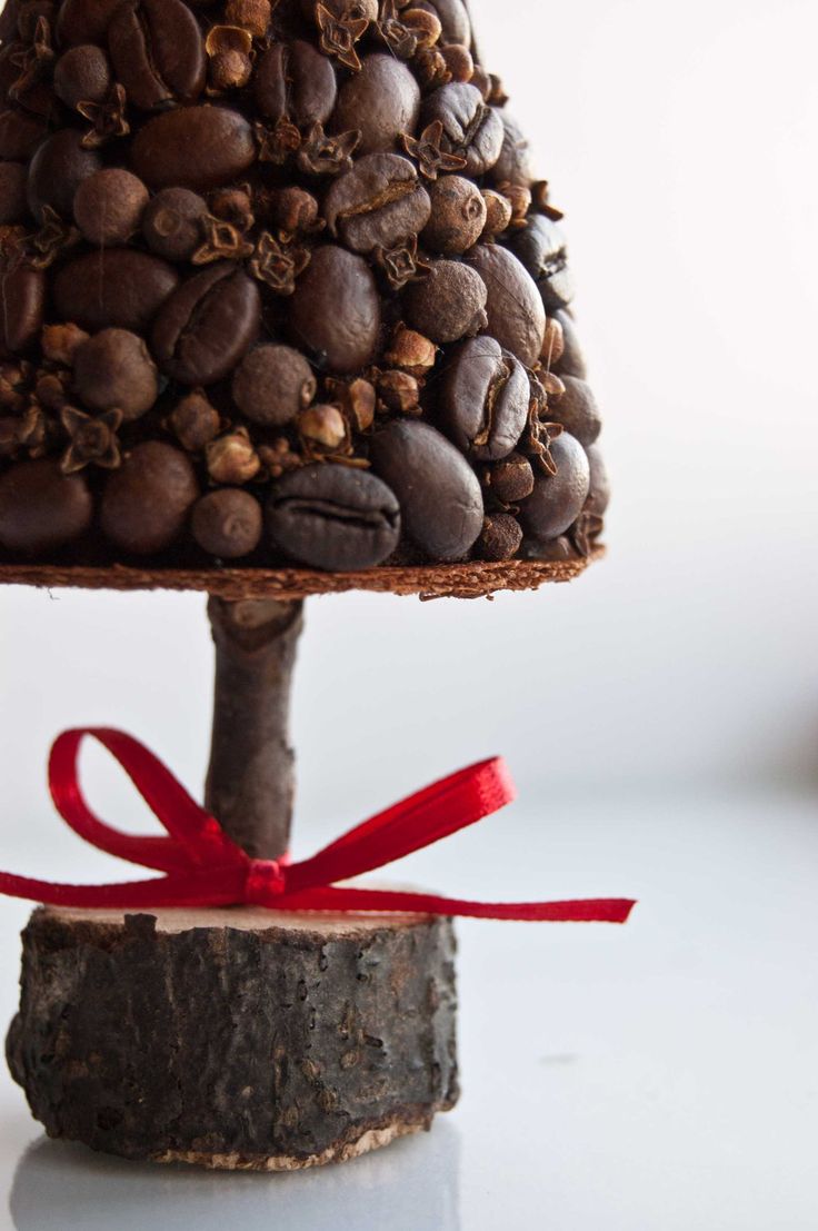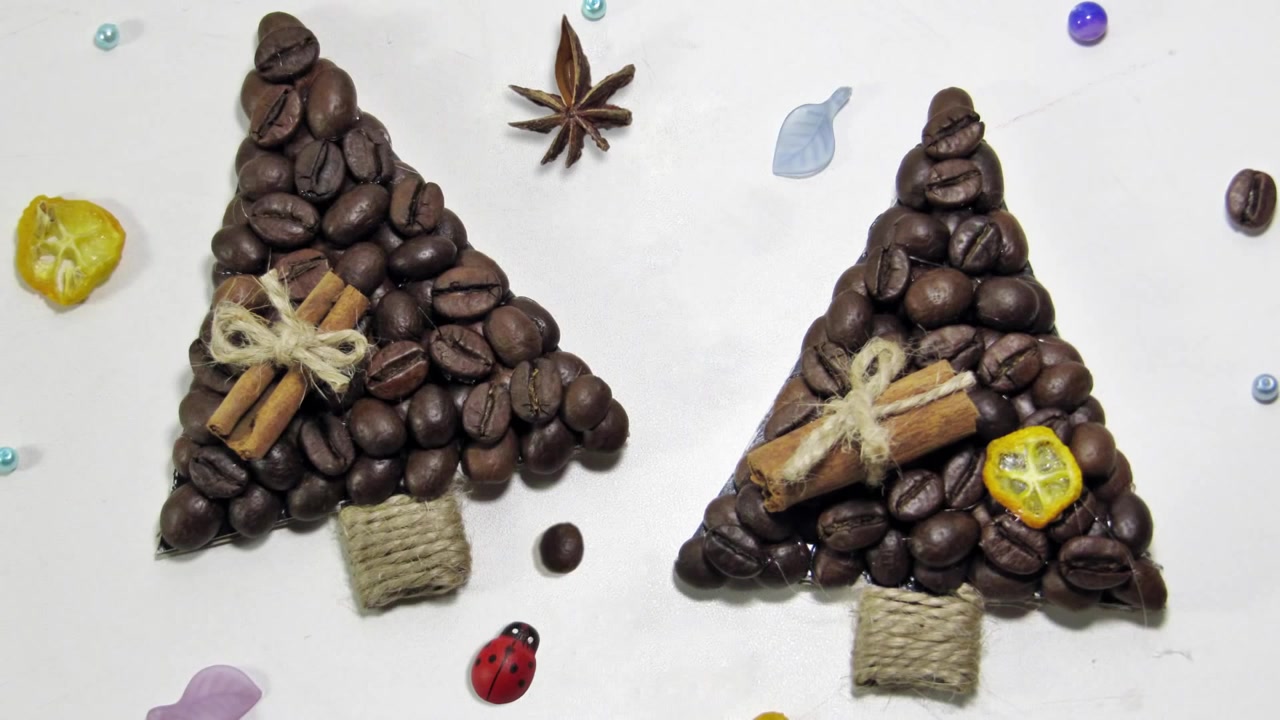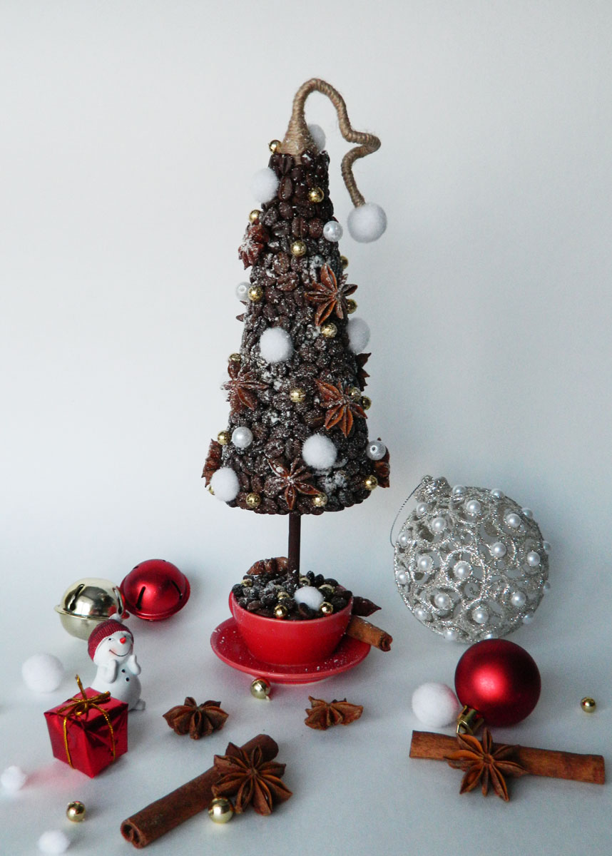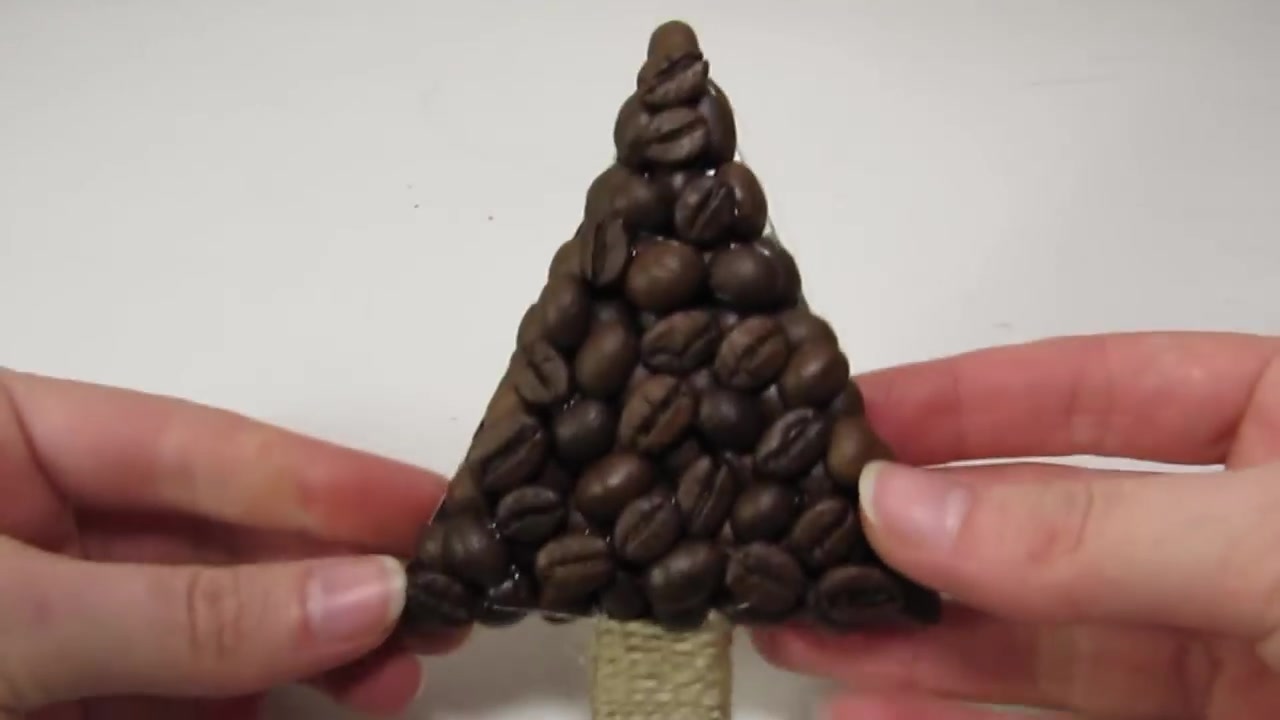 Artesanato elegante em estilo eco pronto. Para usá-lo como um brinquedo de Natal, antes de colar os grãos, fixe uma linha de barbante no topo - então o produto pode ser facilmente usado em uma árvore de Natal real.
