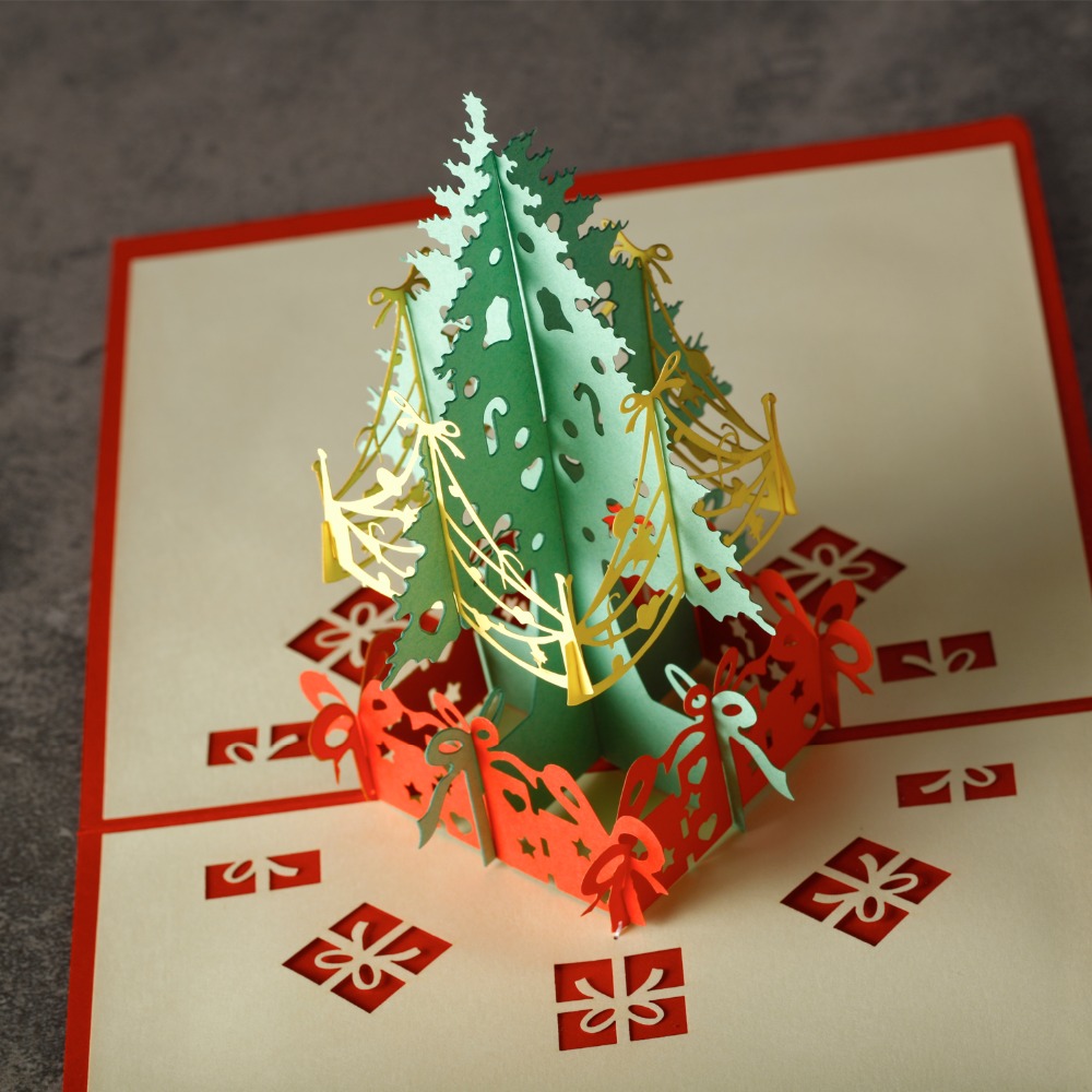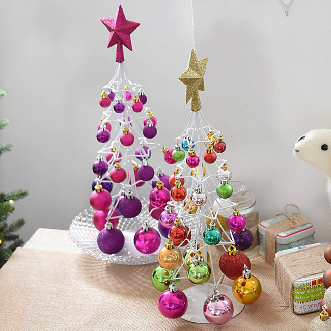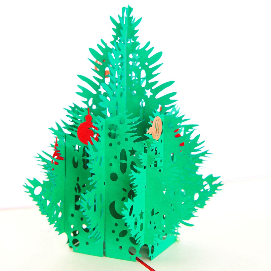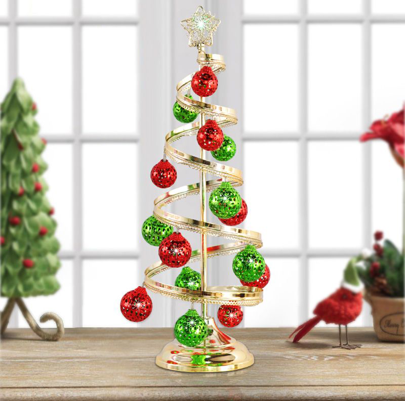 O abeto mantém firmemente na base, parece brilhante e elegante, será um bom presente para as pessoas nativas.