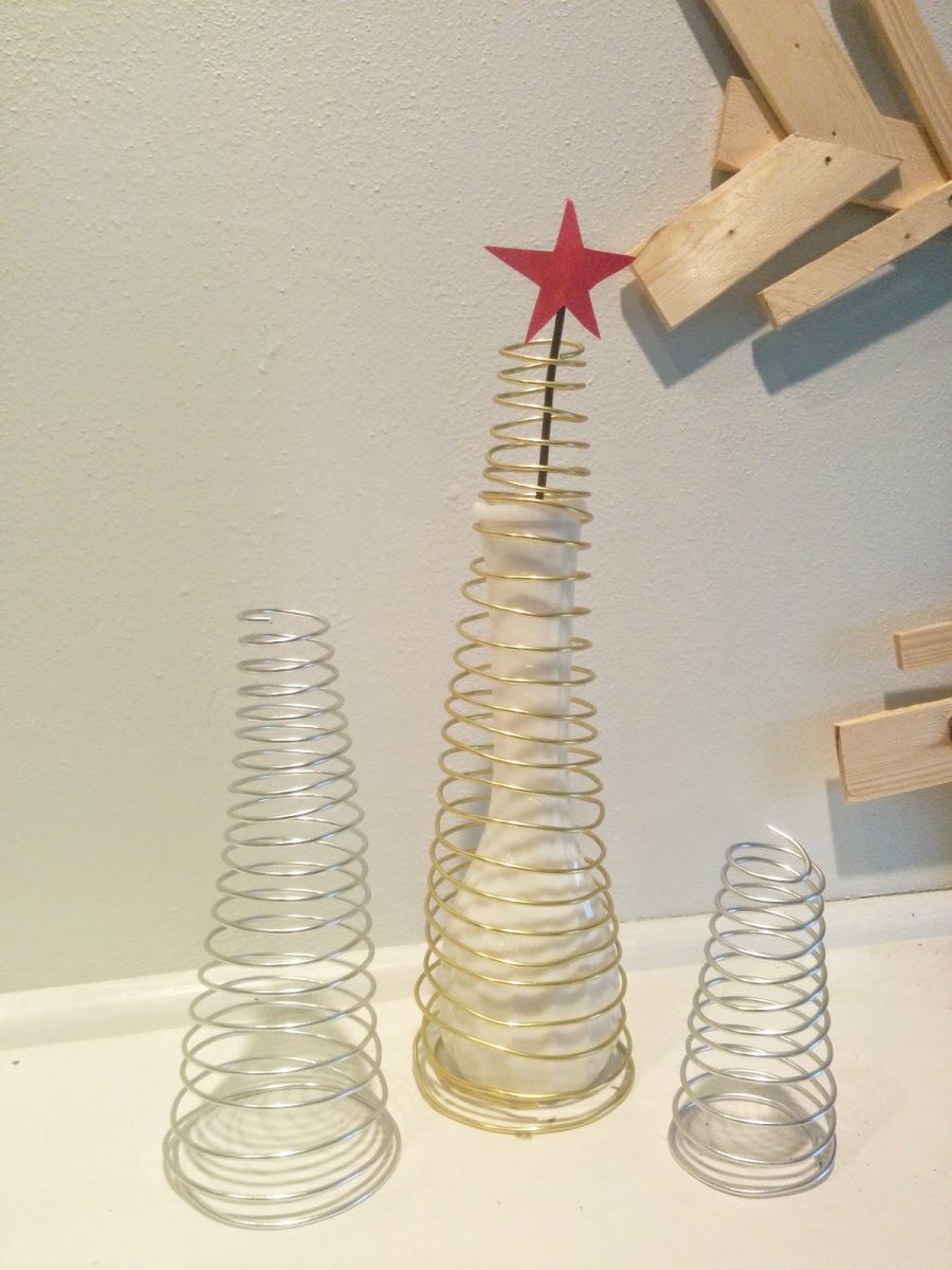 Em seguida, crie uma agulha de árvore de Natal. Pegue o enfeite verde, começando do topo, nós enrolamos o quadro. Brinquedos ao mesmo tempo é necessário retirar-se debaixo do ouropel. Prenda a extremidade inferior do enfeite com um grampeador na base da garrafa.