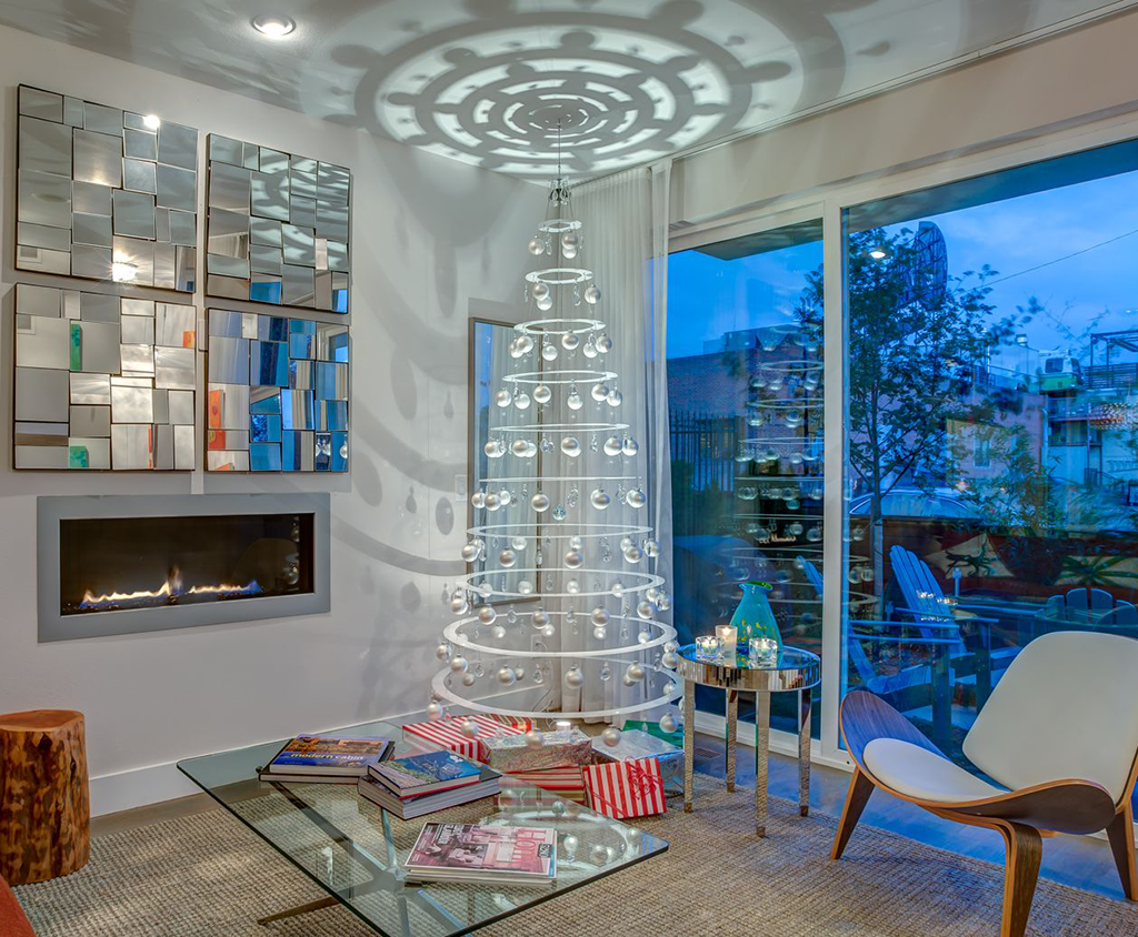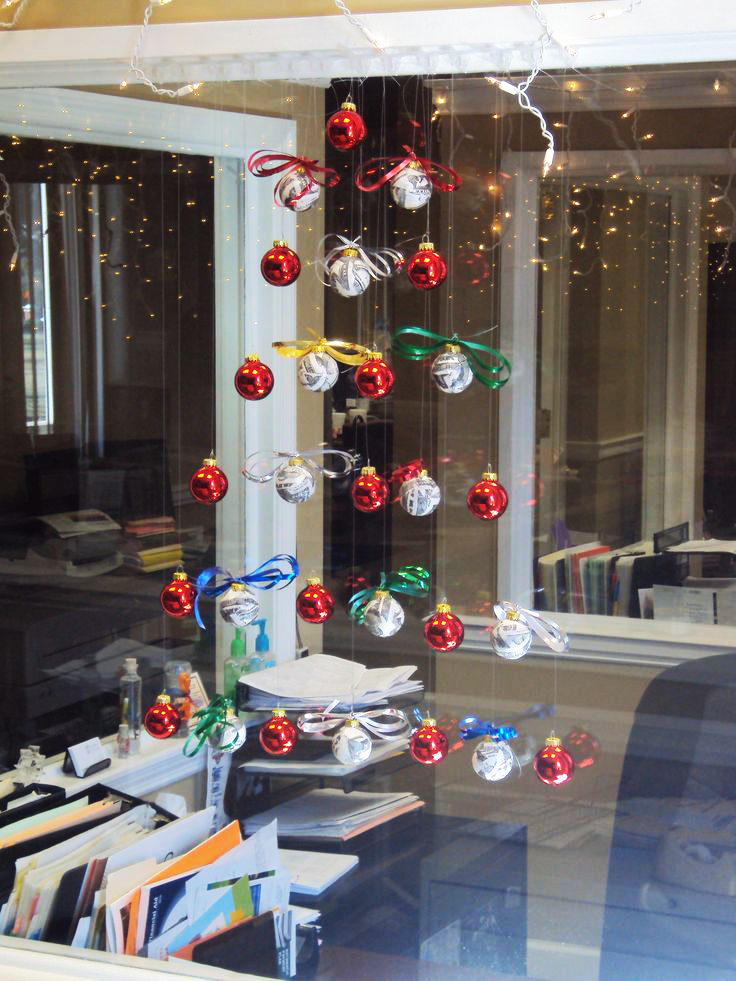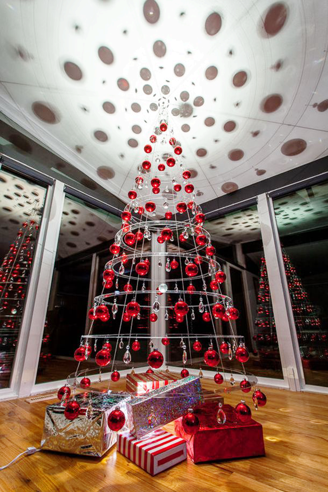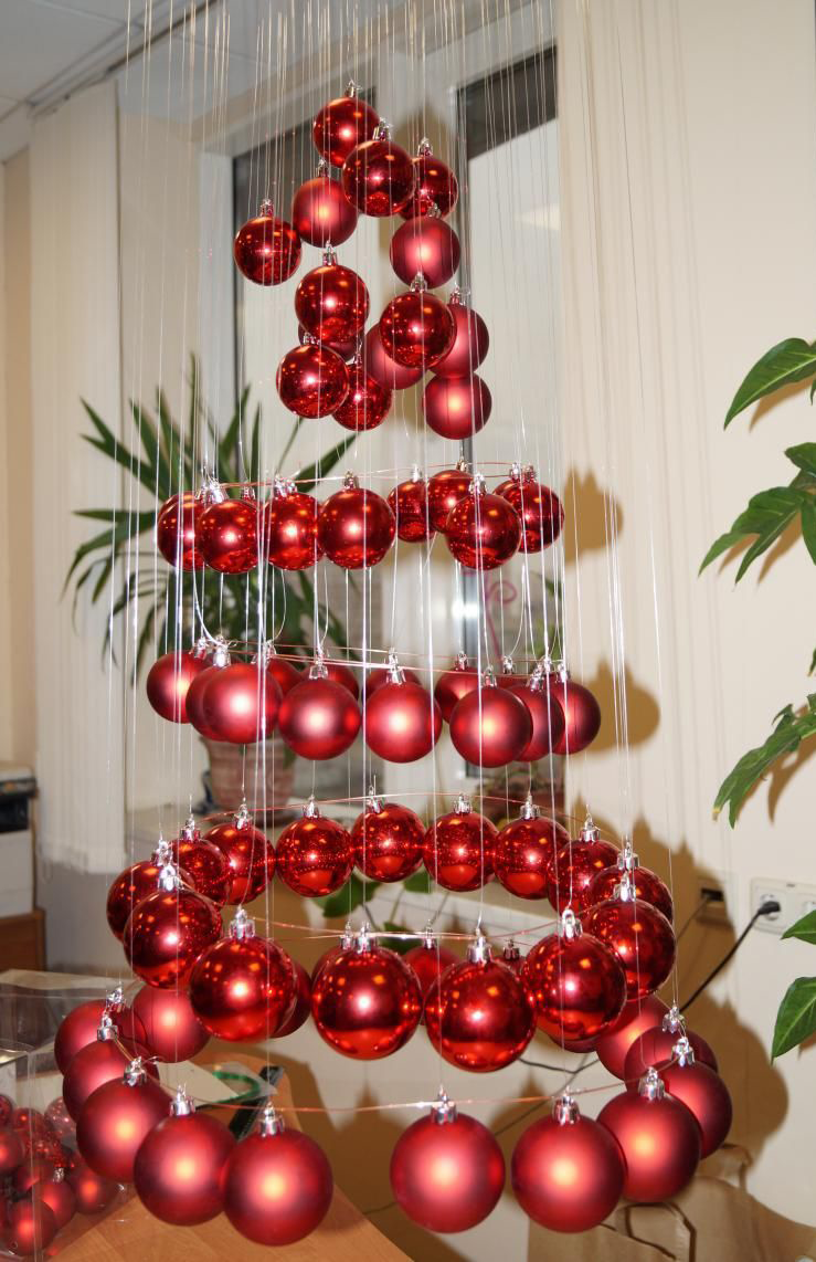 Se os produtos listados fossem pequenos em tamanho, então uma árvore de Natal feita de enfeites e bolas se tornaria uma opção de decoração completa para interiores de casas ou para decorar a área de trabalho no trabalho. A nave torna-se arejada, brilhante, reminiscente dos feriados que se aproximavam.