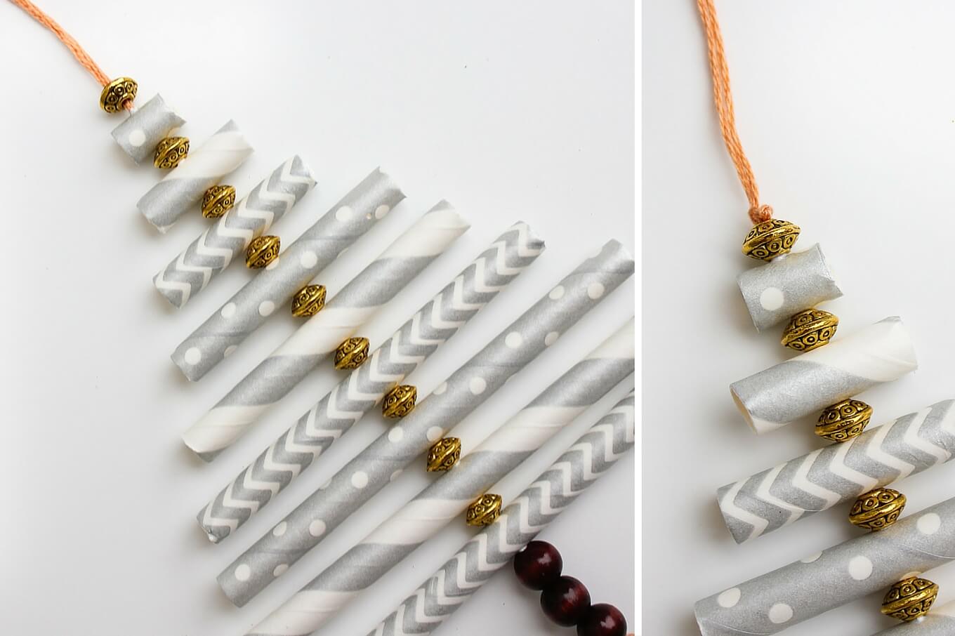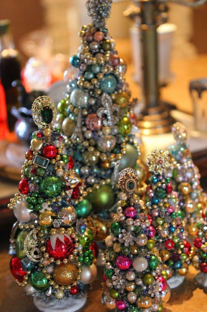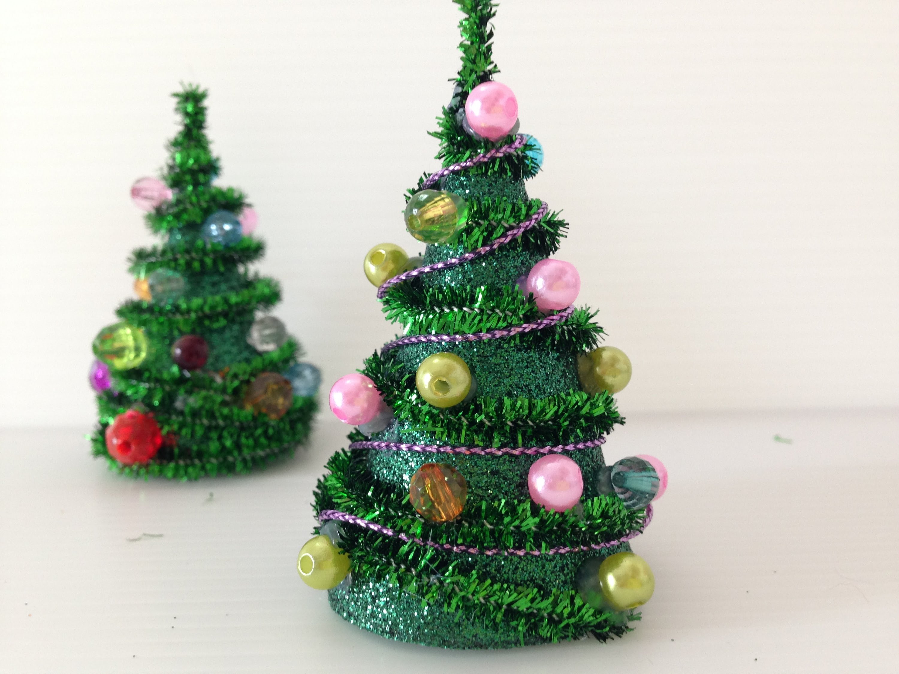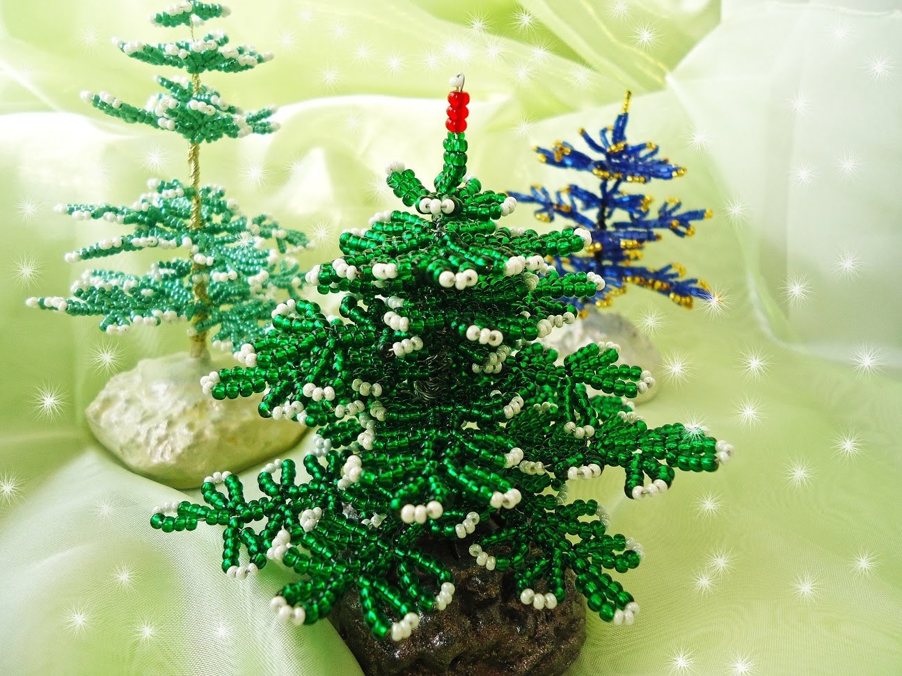 Para decorar o artesanato do Ano Novo, ligue a fantasia: usei contas prontas que são vendidas em uma loja do departamento de decoração do Ano Novo. Você pode fixá-los com a ajuda de fios, agulhas, começando a envolver um abeto de cima.