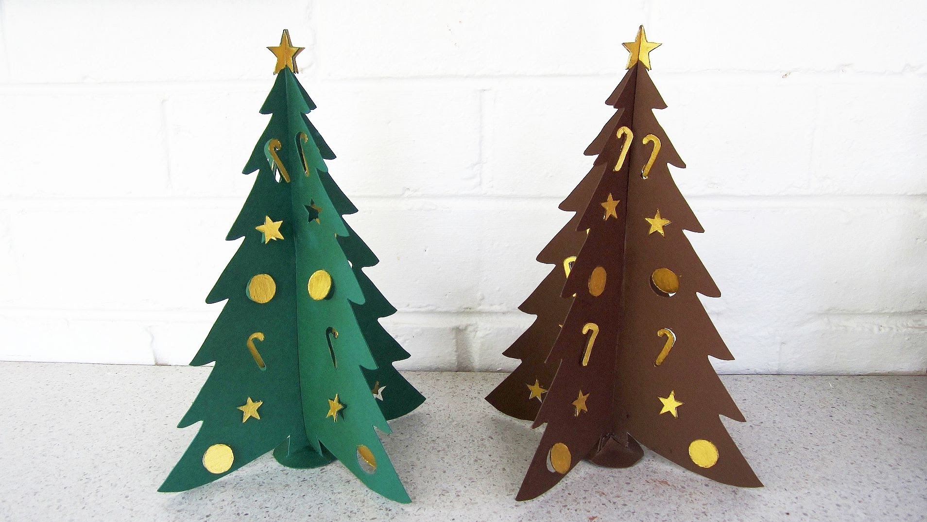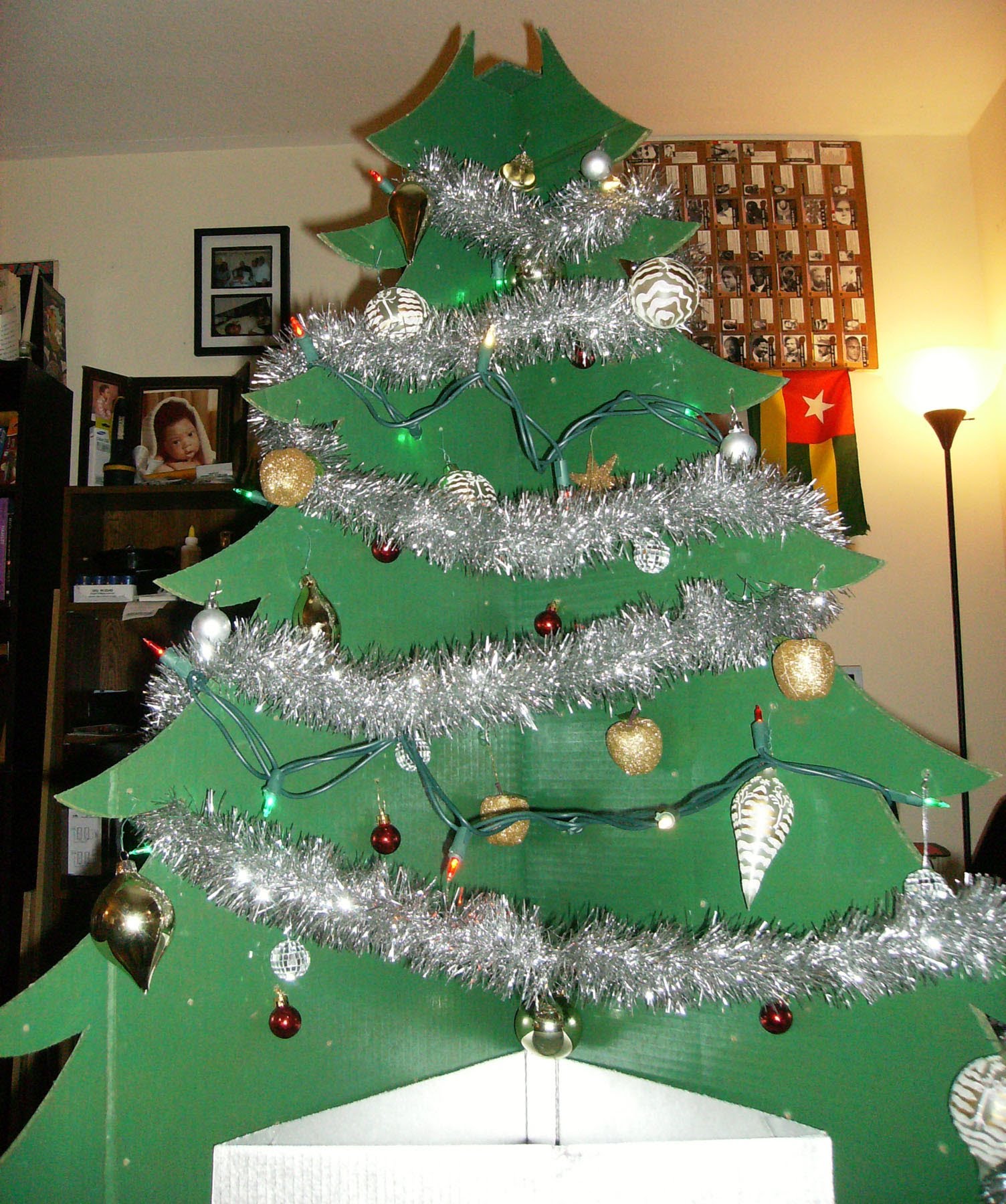 Em um papelão grosso, desenhe uma árvore que você goste. Eu aconselho a desenhar um triângulo regular com uma perna quadrada característica na parte inferior - será mais fácil trabalhar. O espaço em branco deve ser cortado.