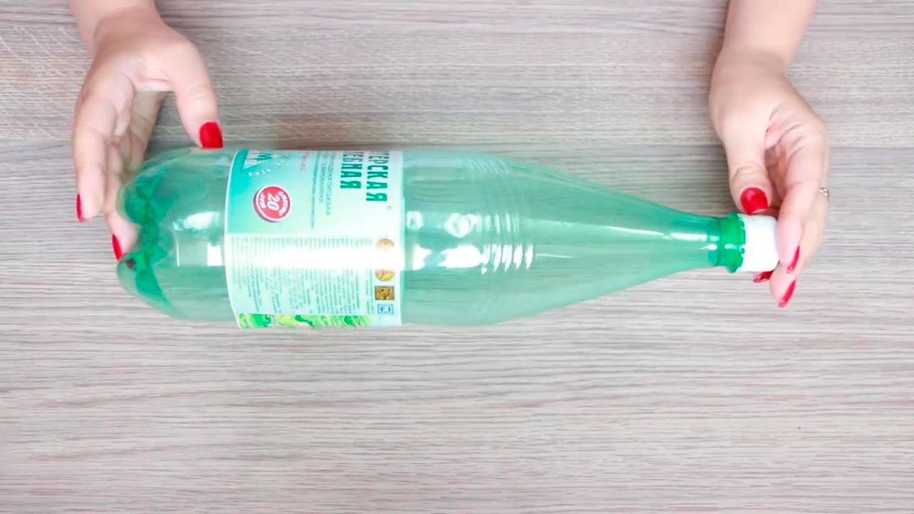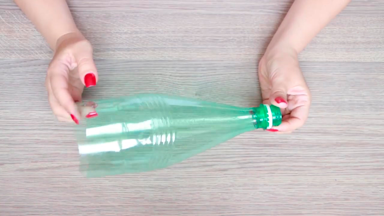 Nós fazemos a peça de trabalho para o quadro. Cortamos o fundo da garrafa de plástico, deixando apenas a parte em forma de cone. Esta parte deve ser colocada de maneira estável na mesa. Se a peça for irregular, corte-a.